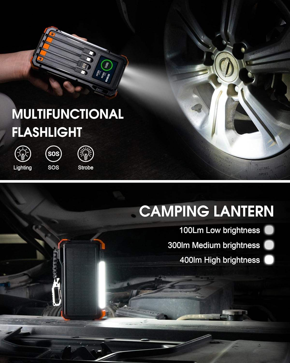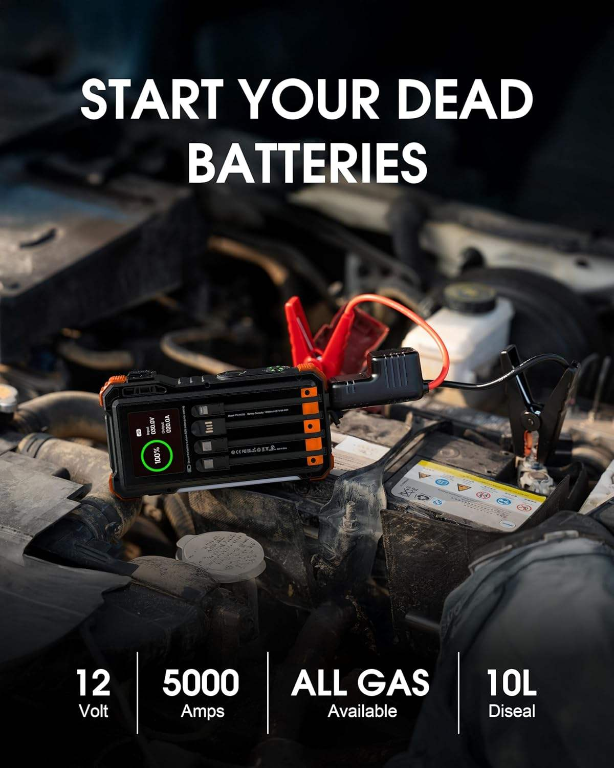 12000mAh 20W Solar Jump Starter 5000A Peak 12V for 10.0L Gas & 6.0L Diesel Engines Portable Emergency Car Outdoor
