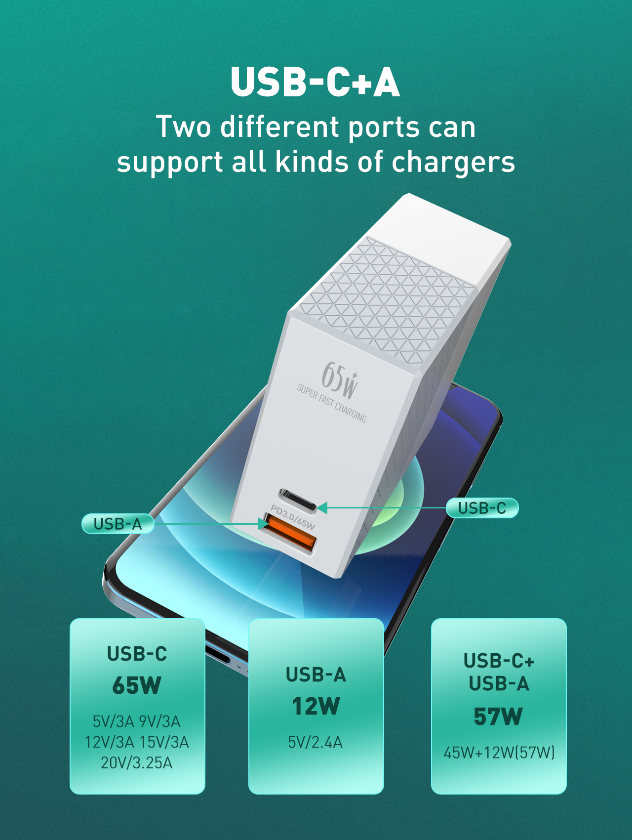 LDNIO--Charger--A2620C "65W Great Power P D (USB-C) fast charger + QC3.0 Fast charger US/EU/UK plug"
