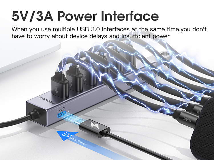 1*USB C 5V, Connect 5V adapter to provide extra power to the hub