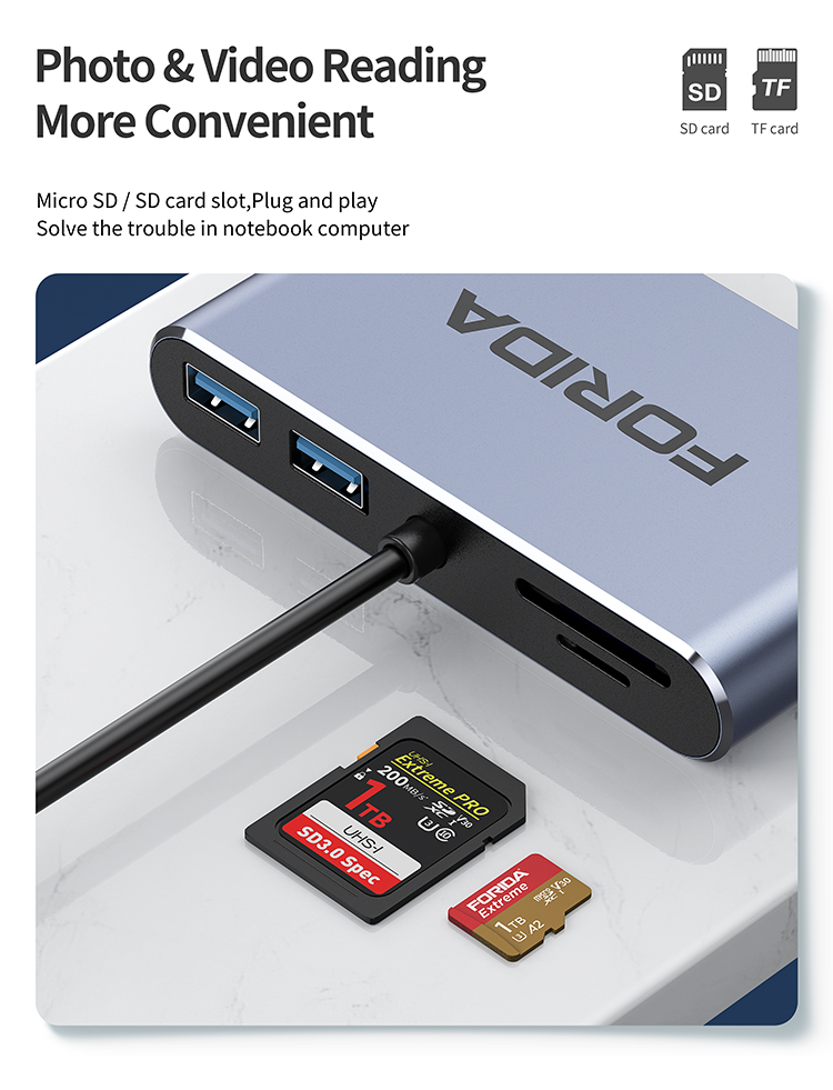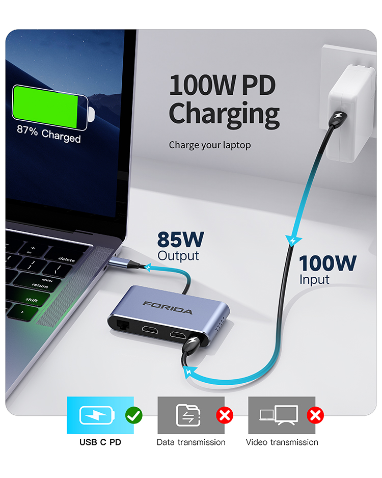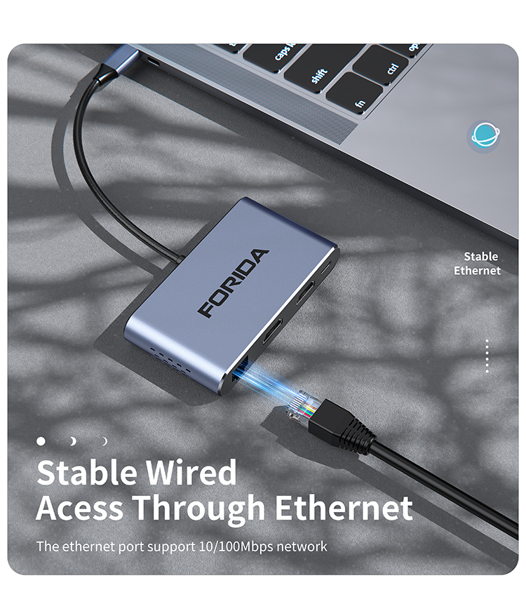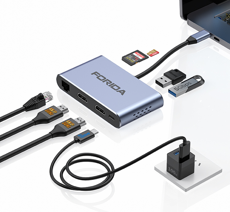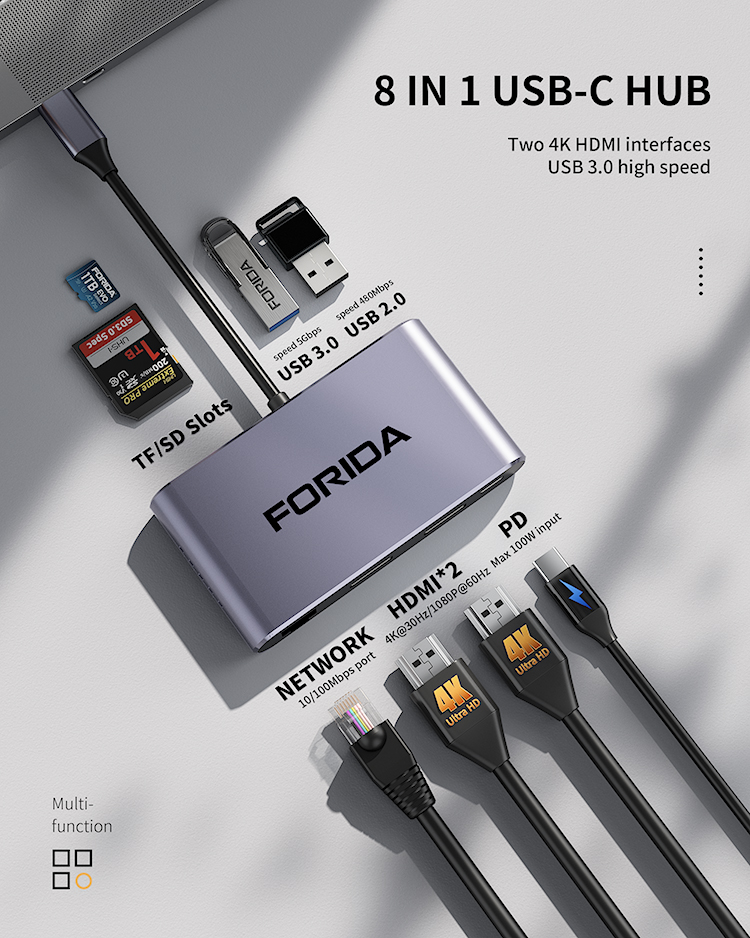 FORIDA Docking station HYD-9937T 8 in 1 USB C HUB Expanding adapter