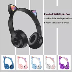 SENBIDA P47M LED Light Cute Cat Ear Headphones Gaming Bluetooth 5.0 Wireless Headset Gamer Hifi Sport Earphones Wireless Earbuds