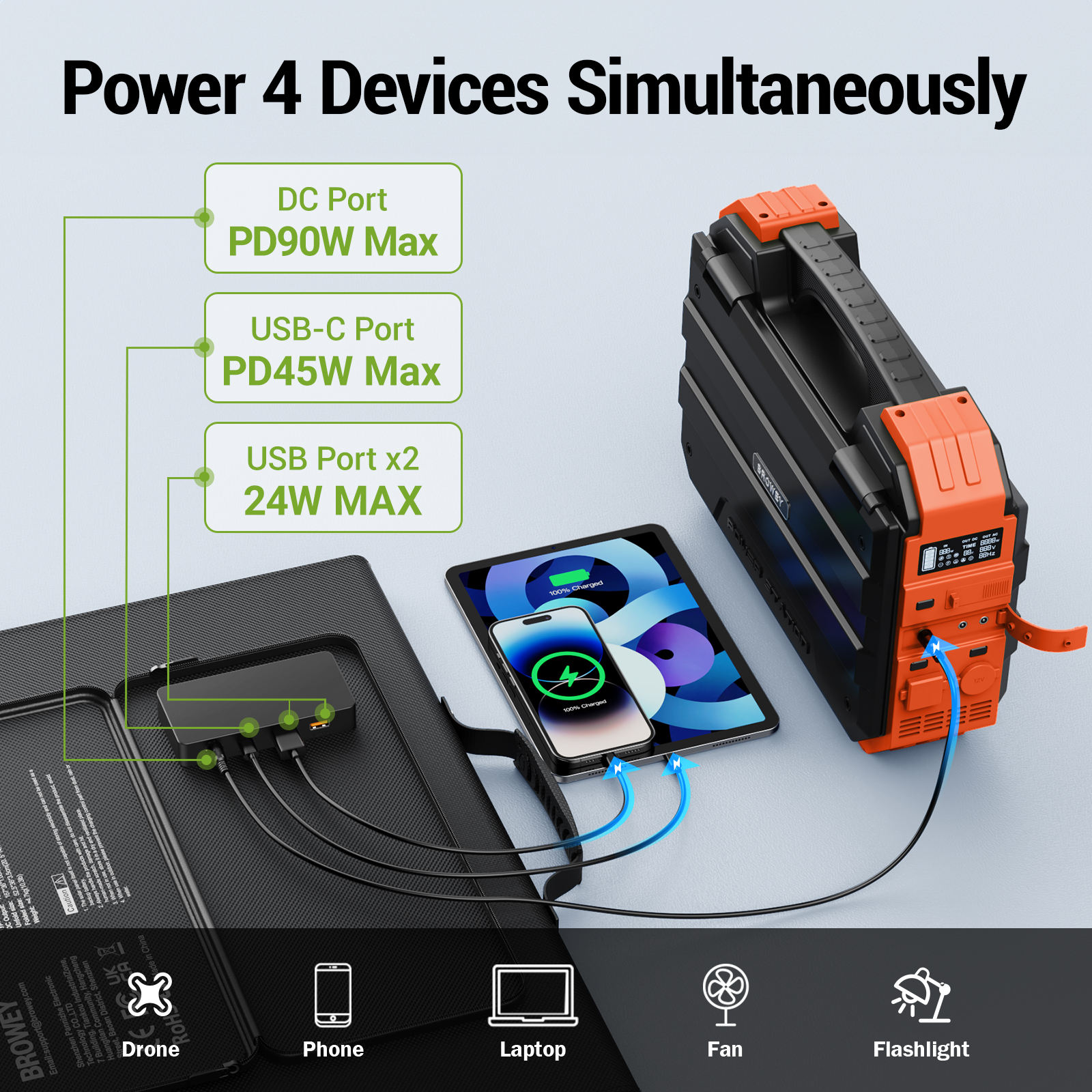 High-Efficiency 90W Portable Solar Panel with MPPT Controller Lithium Ion Battery for Camping & Emergency Power Supply