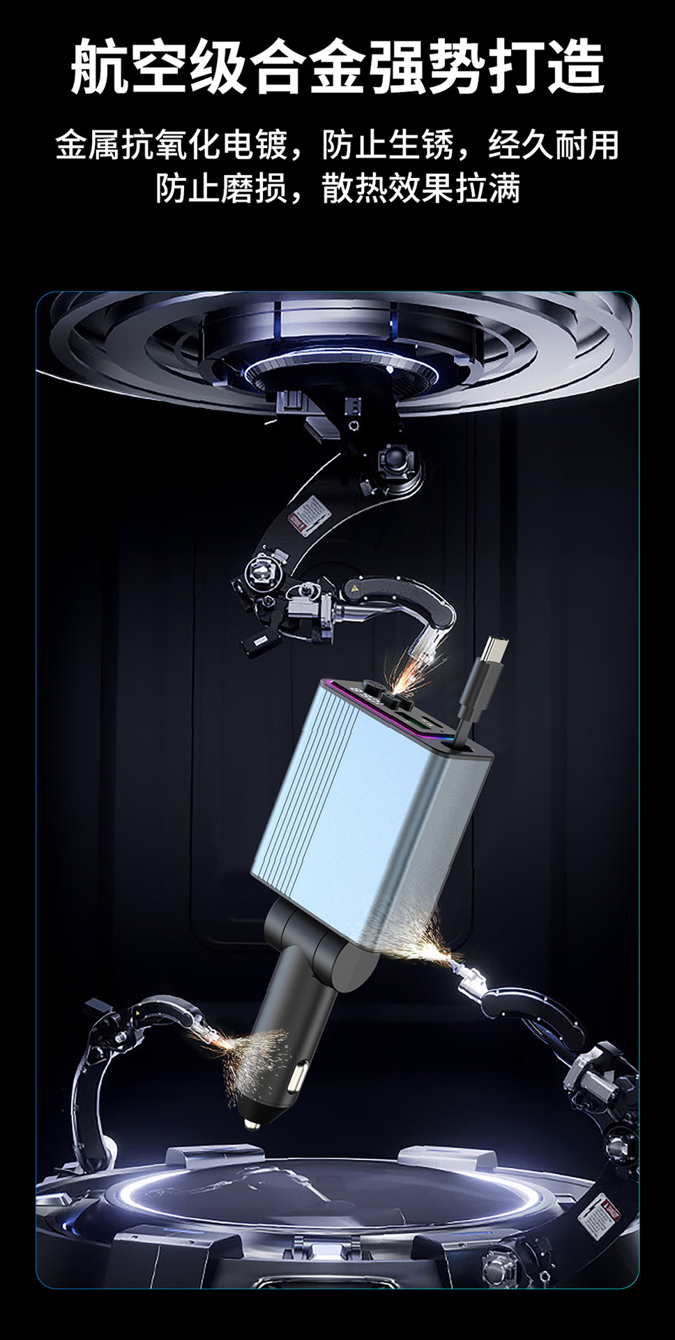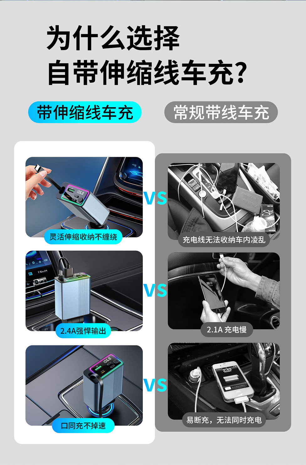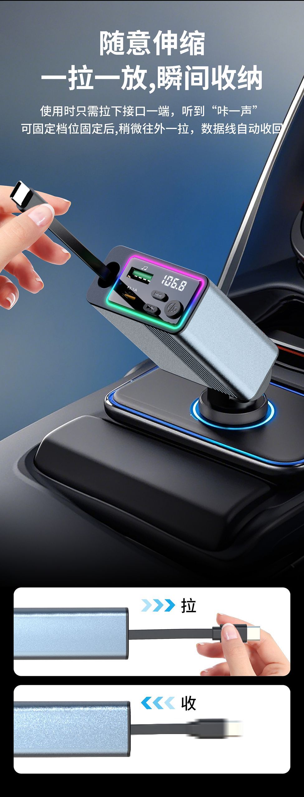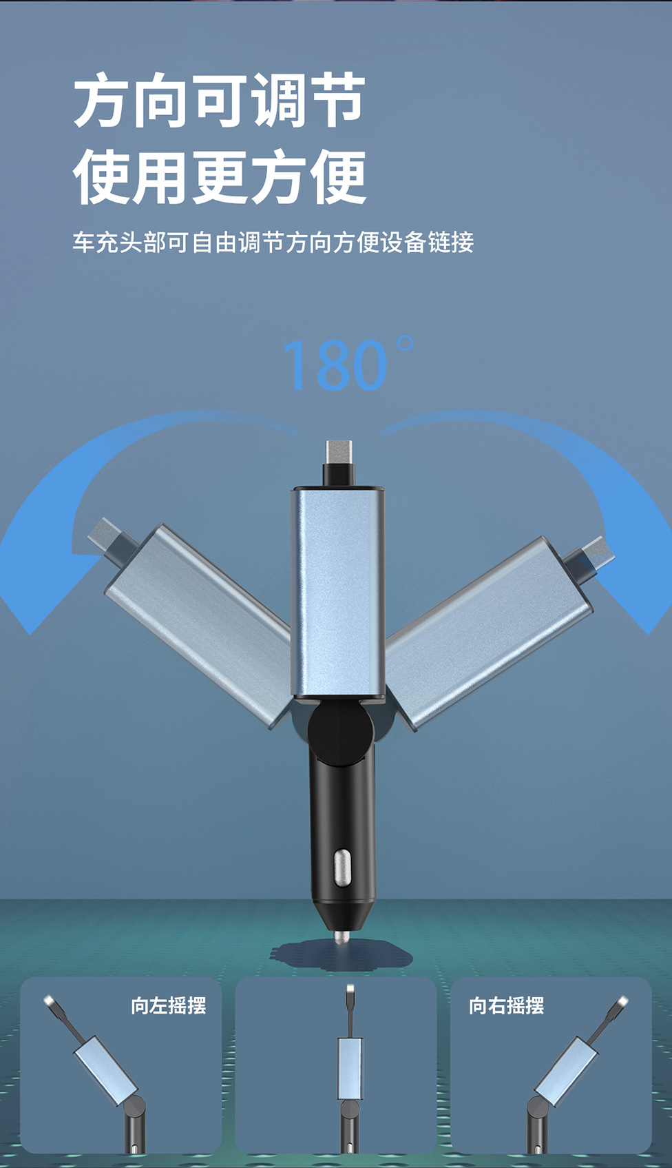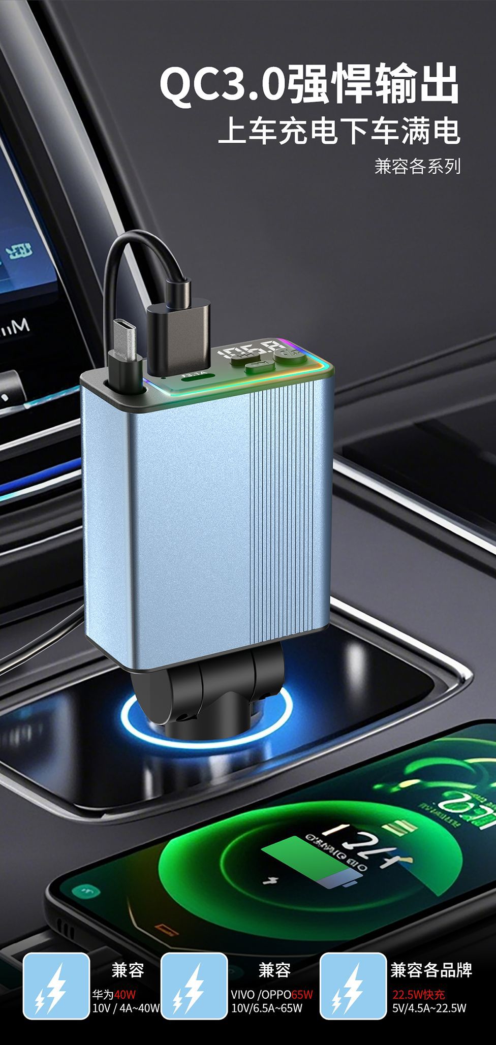 KAIWEIDI -01 45W car charger with three in one retractable cable, mobile phone interface, cigarette lighter, flash charger