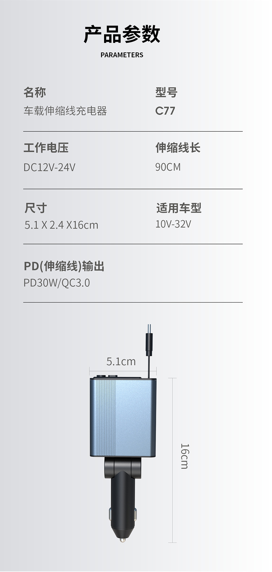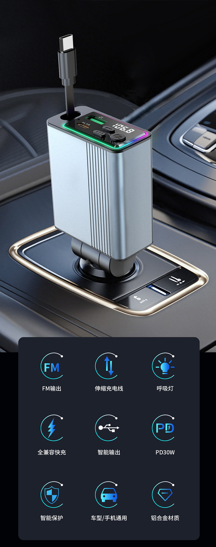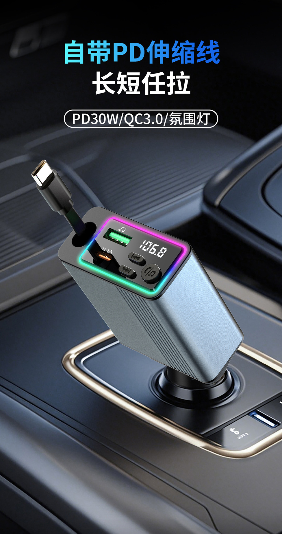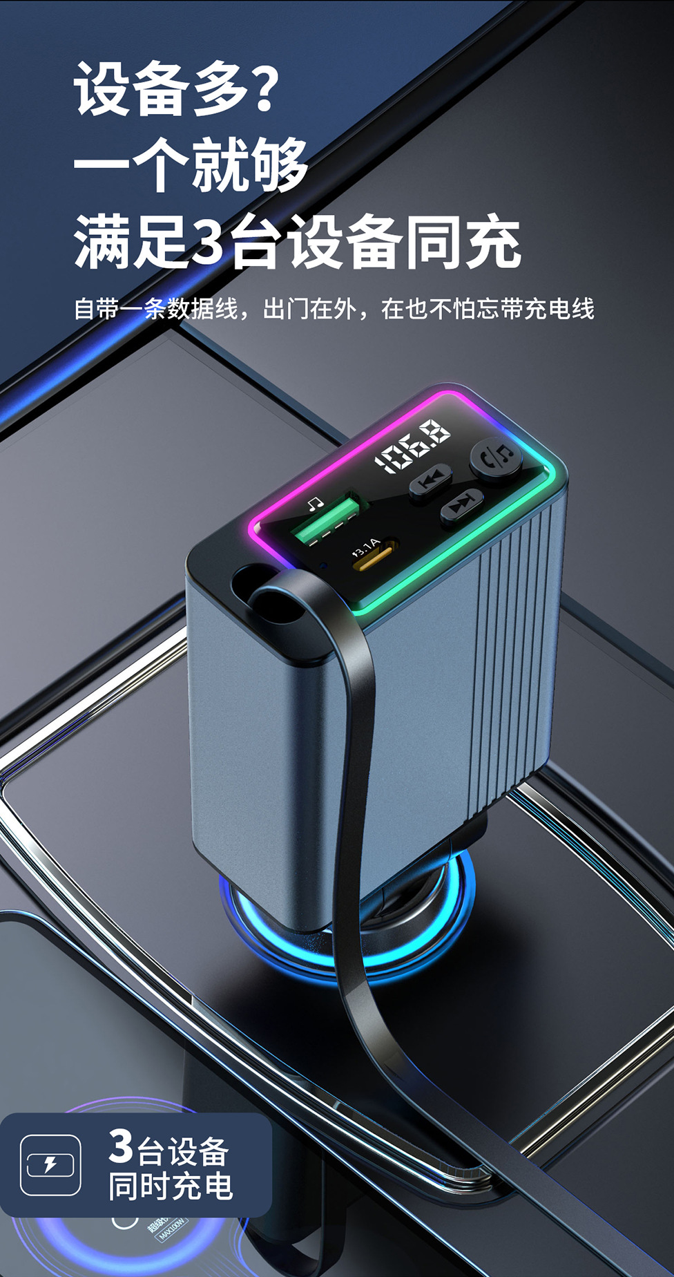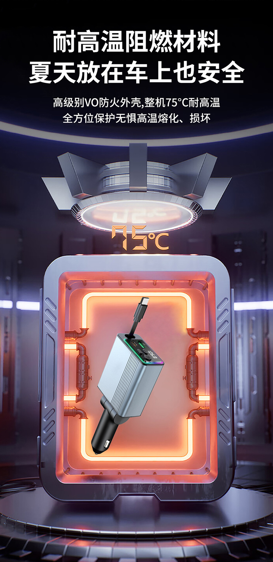 KAIWEIDI -01 45W car charger with three in one retractable cable, mobile phone interface, cigarette lighter, flash charger