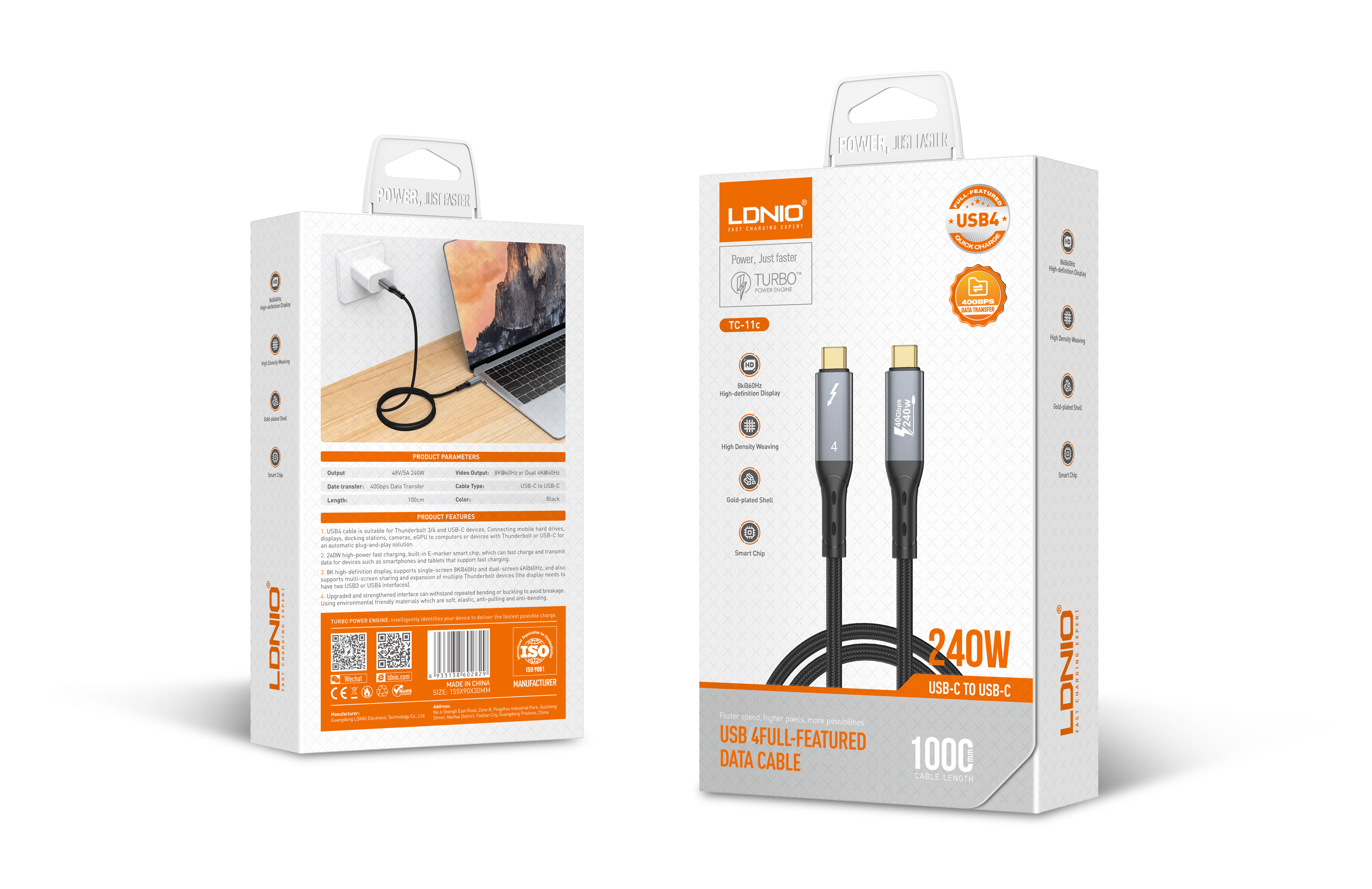LDNIO--Data Cable--TC11c 100CM/ USB4.0- High Speed Transfer + PD3.1 240w Super Fast Charge