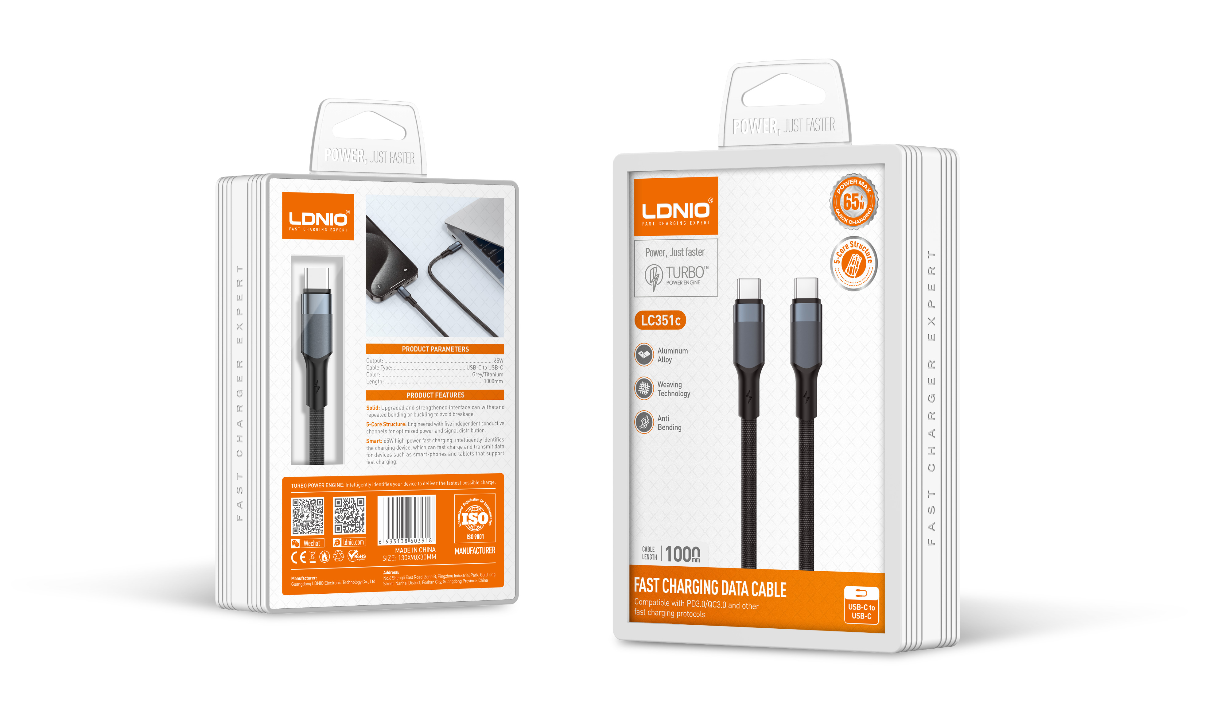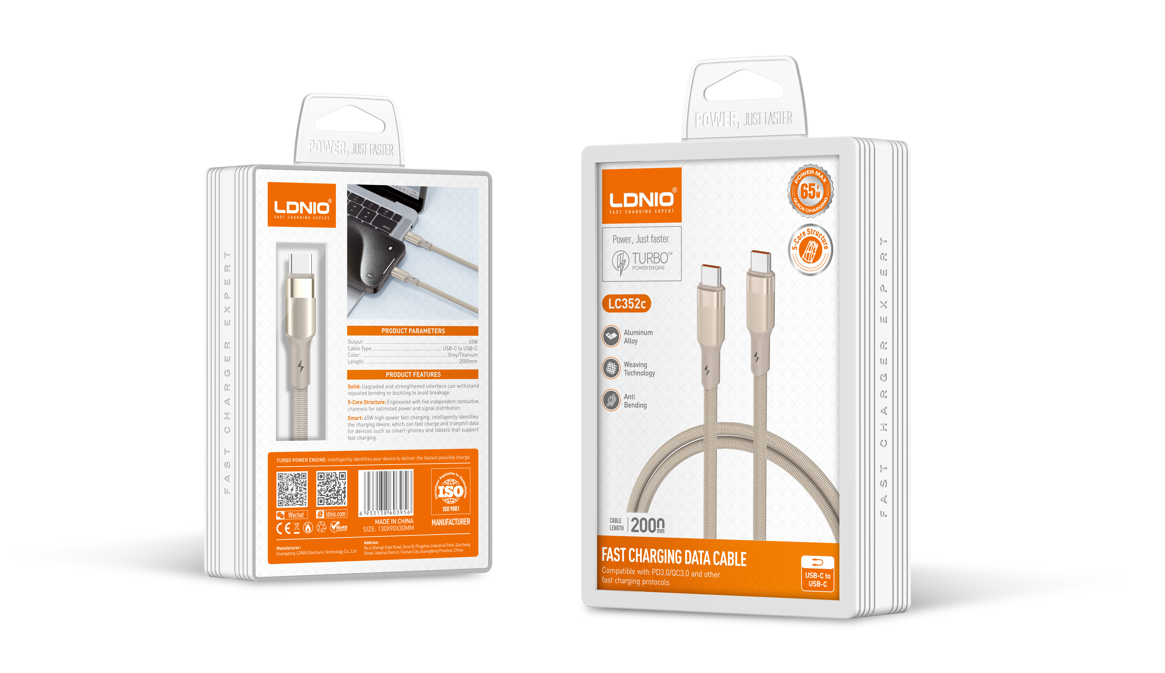 LDNIO--Data Cable--LC351c 1M/65W REINFORCED METAL COLLAR