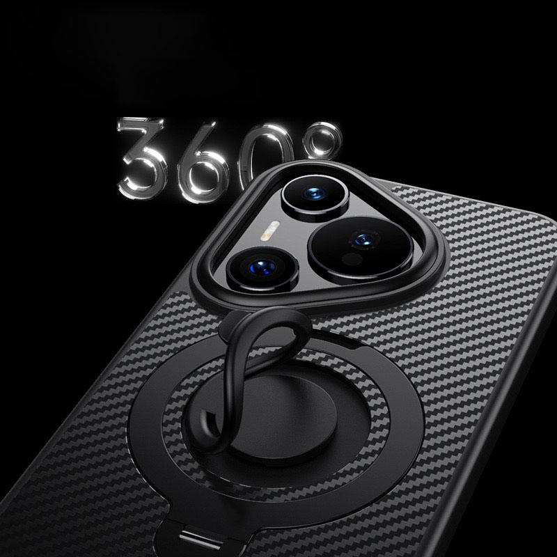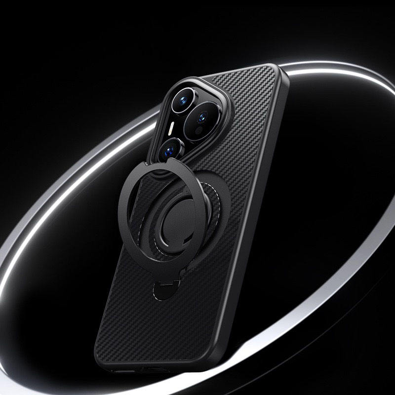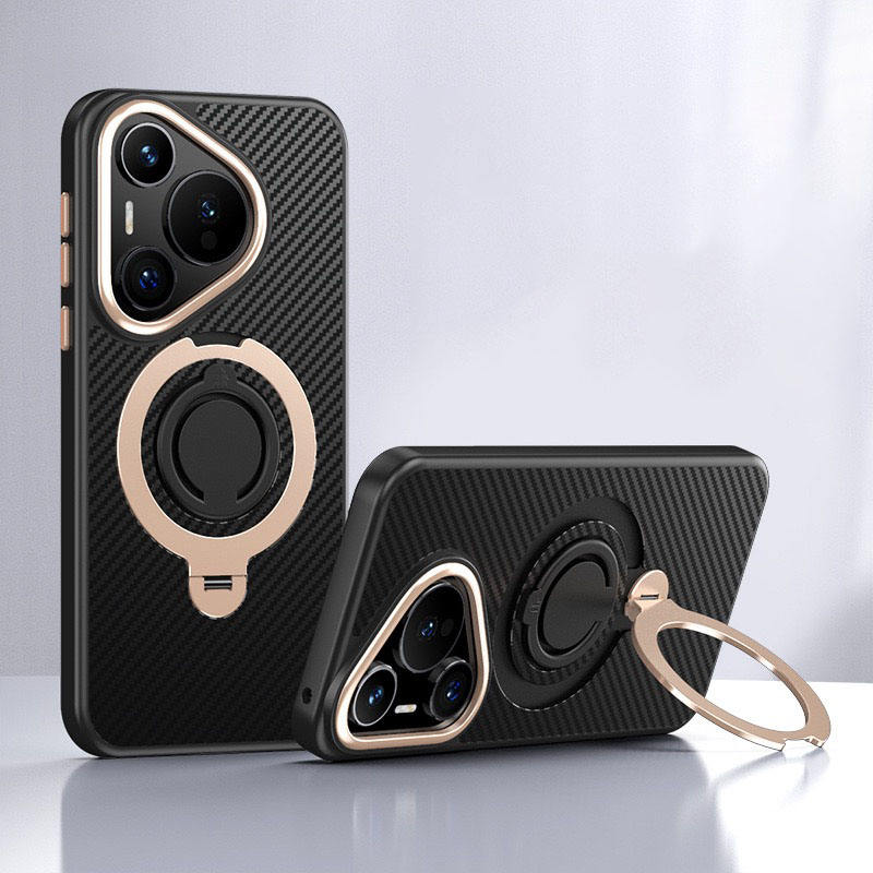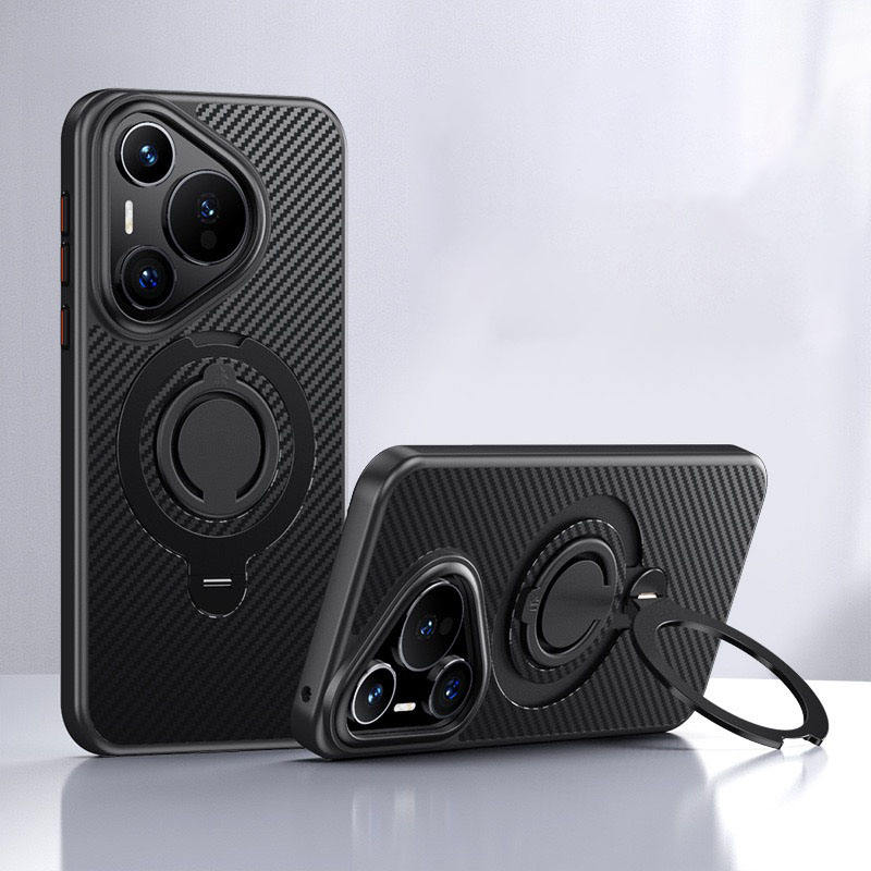 Newest for Huawei P70 Pro+ Kickstand Case 360° Rotating Magnetic Ring Carbon Fiber Style TPU Phone Cover for Huawei Pura 70