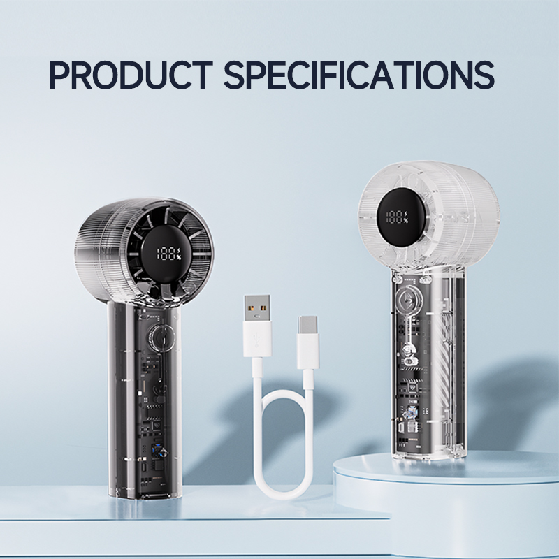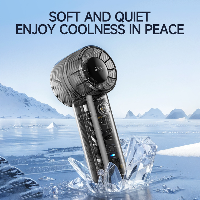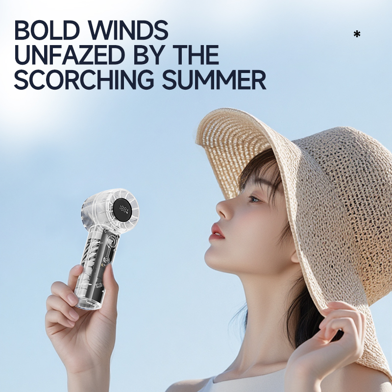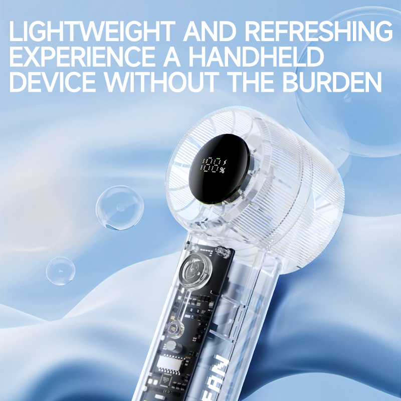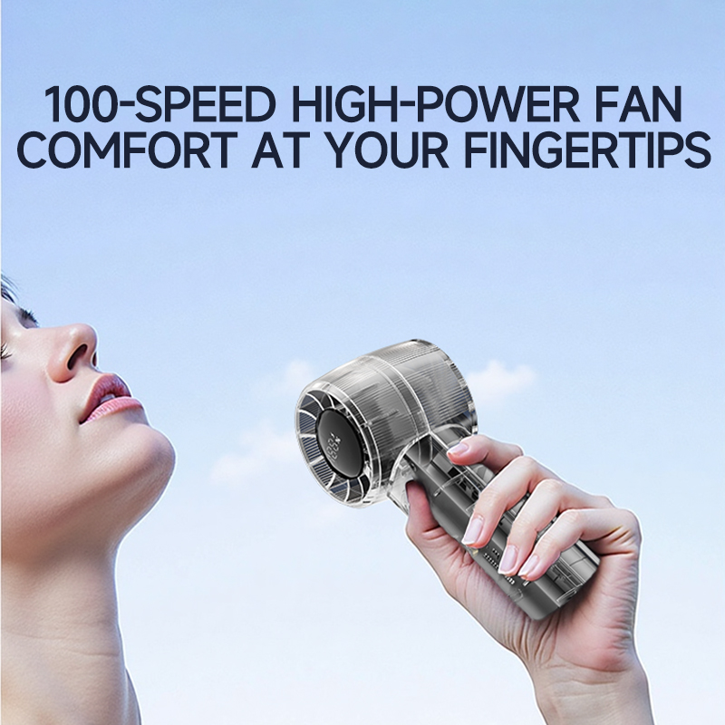Portable Mini Handheld Fan 100-Speeds USB Rechargeable 2000mAh Battery Lightweight Bladeless Transparent Personal Fan