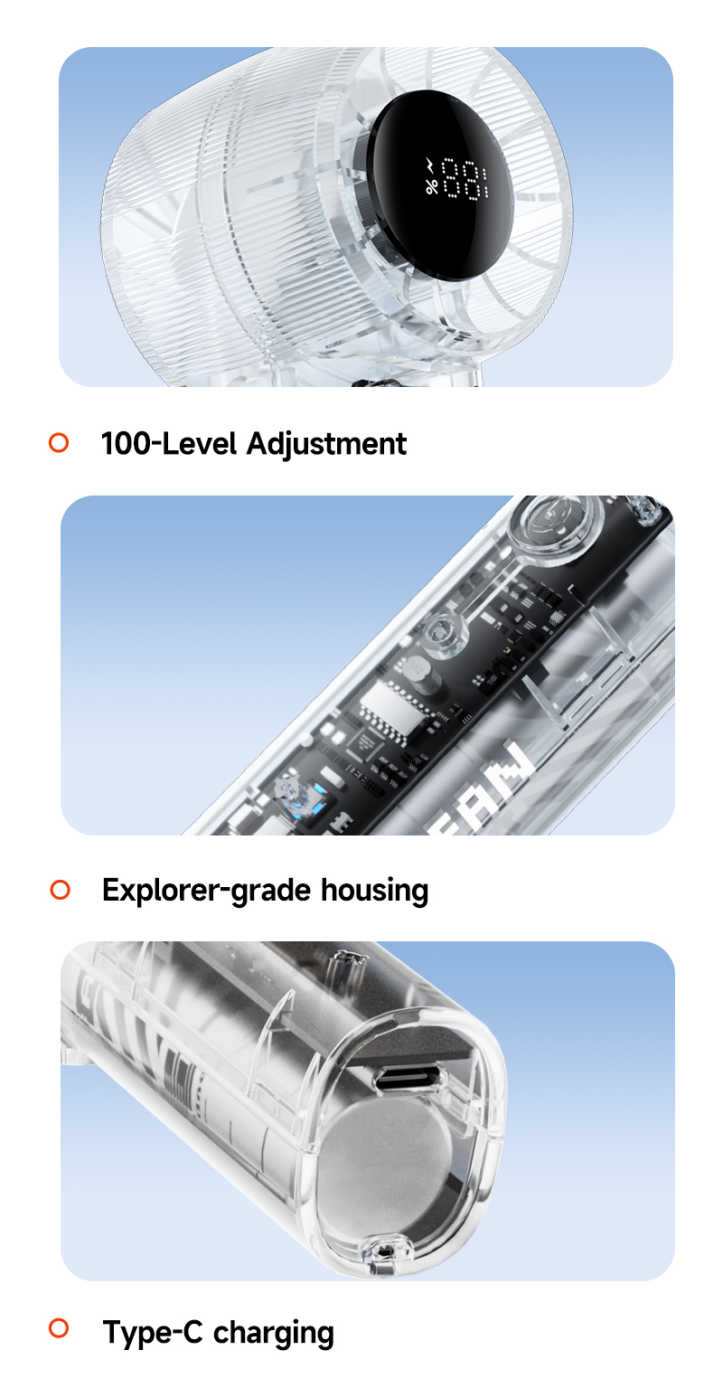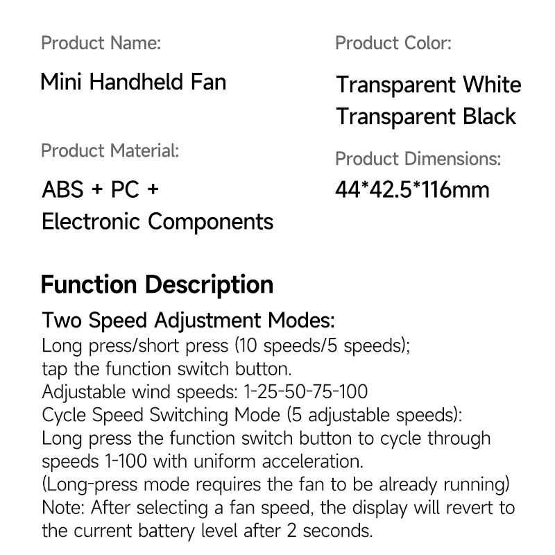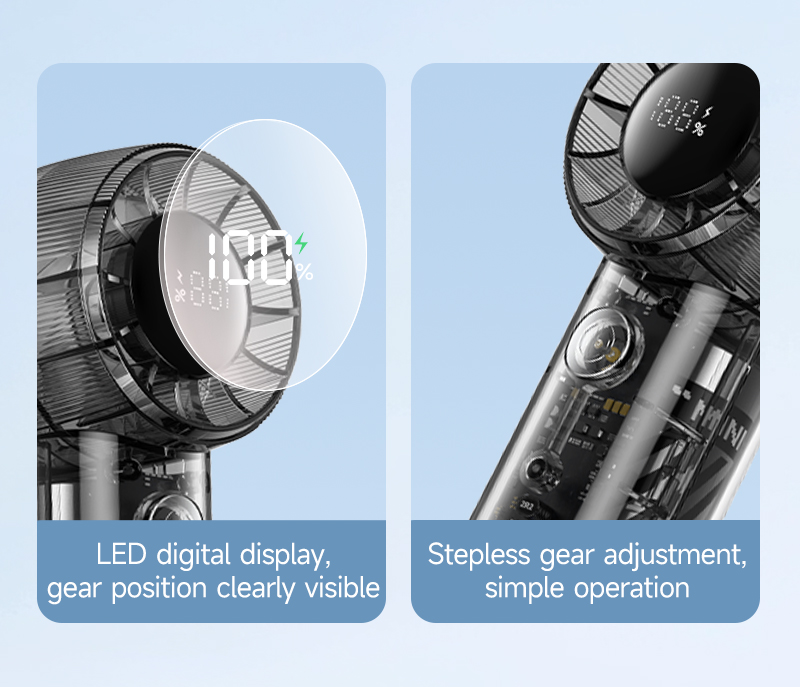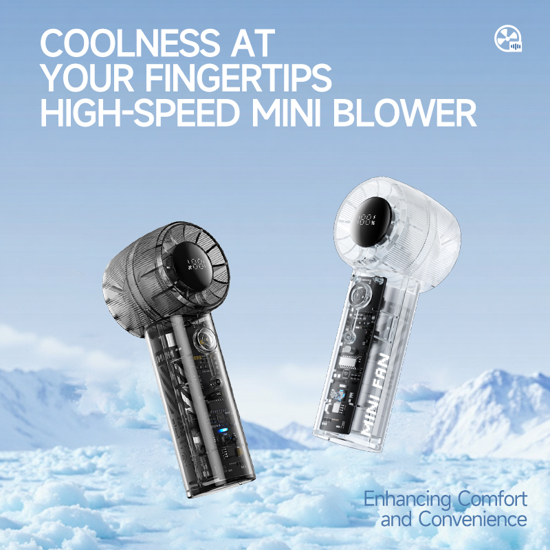 Portable Mini Handheld Fan 100-Speeds USB Rechargeable 2000mAh Battery Lightweight Bladeless Transparent Personal Fan