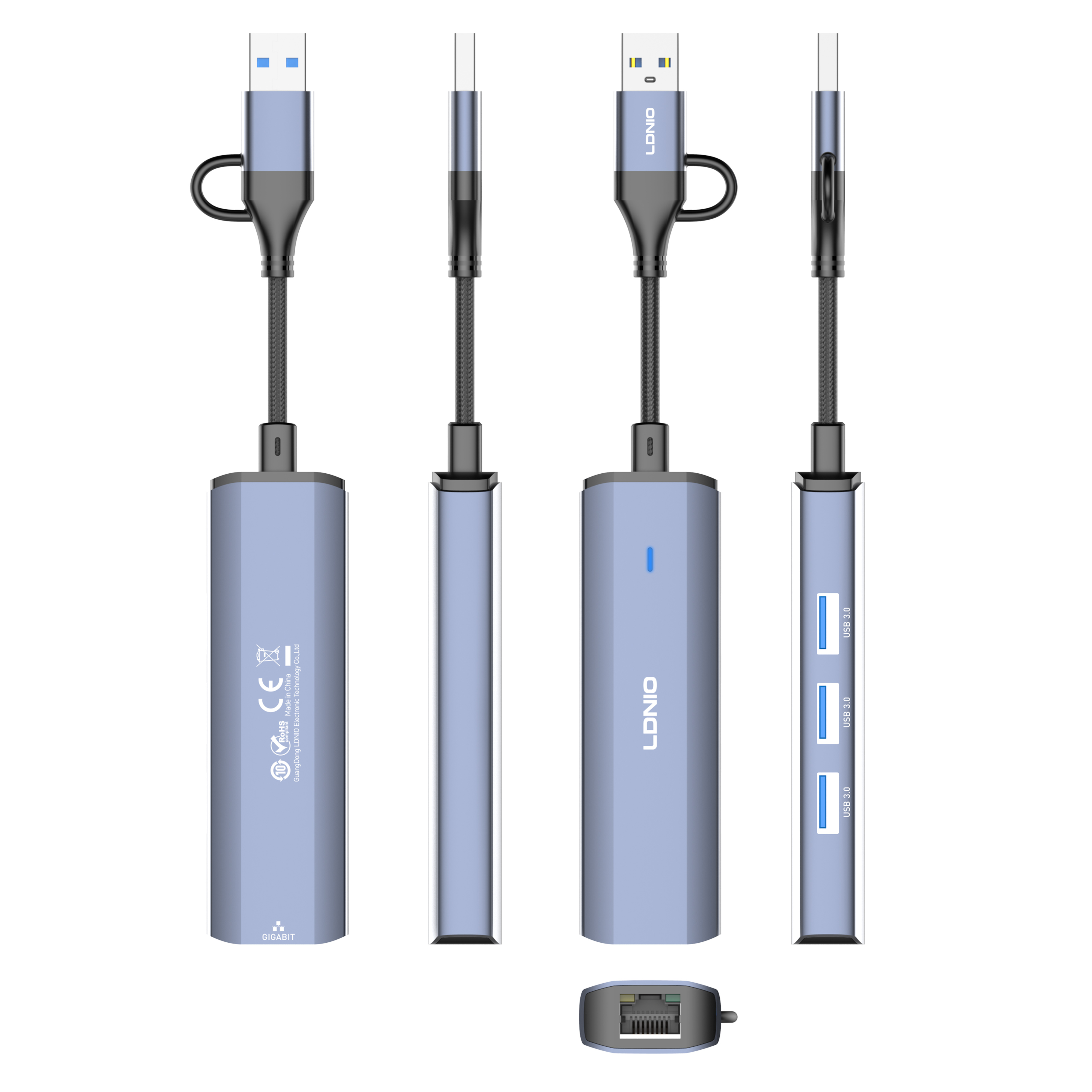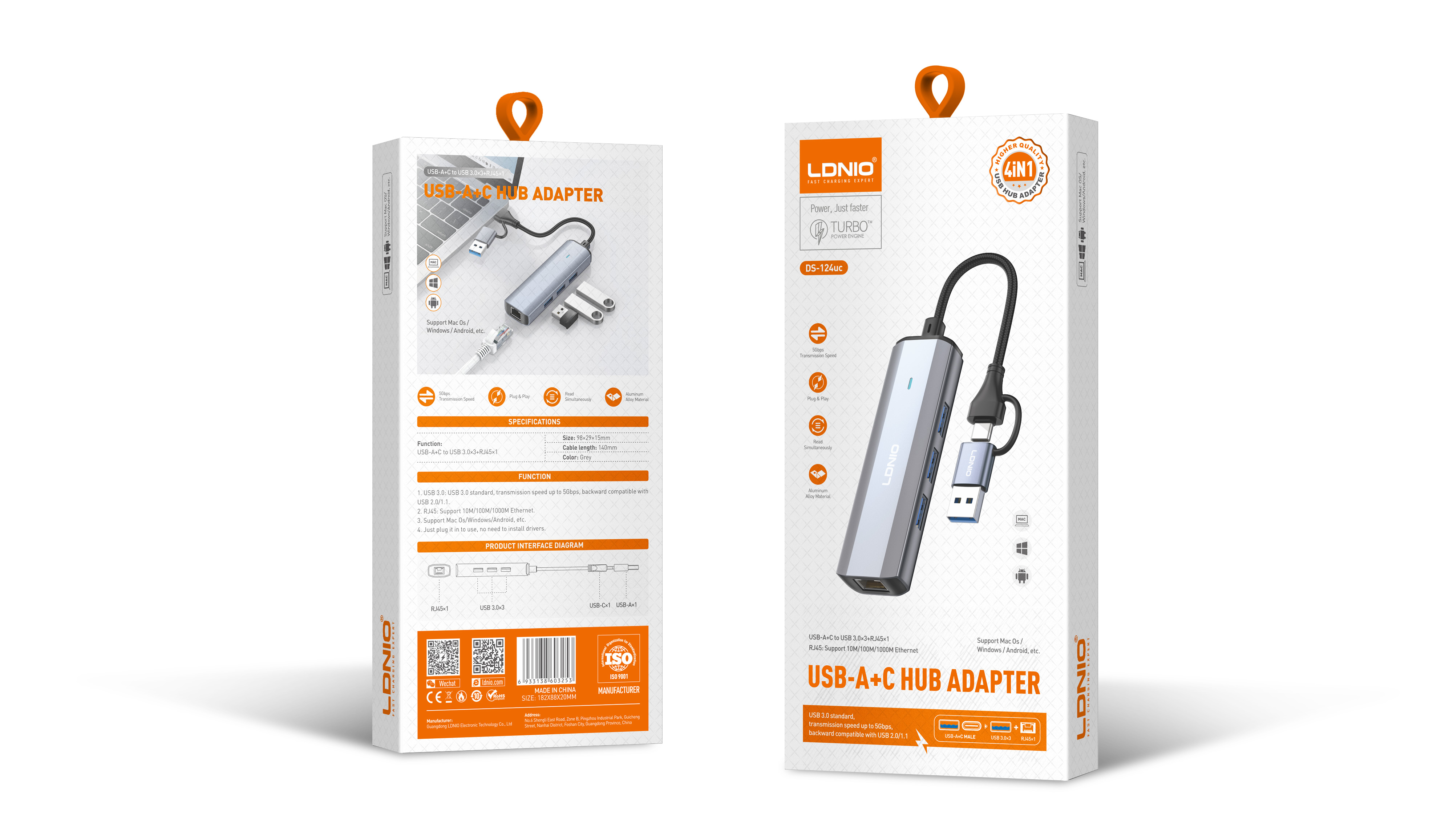 DS-124UC "USB-A + Type-C To USB3.0*3+RJ45*1"