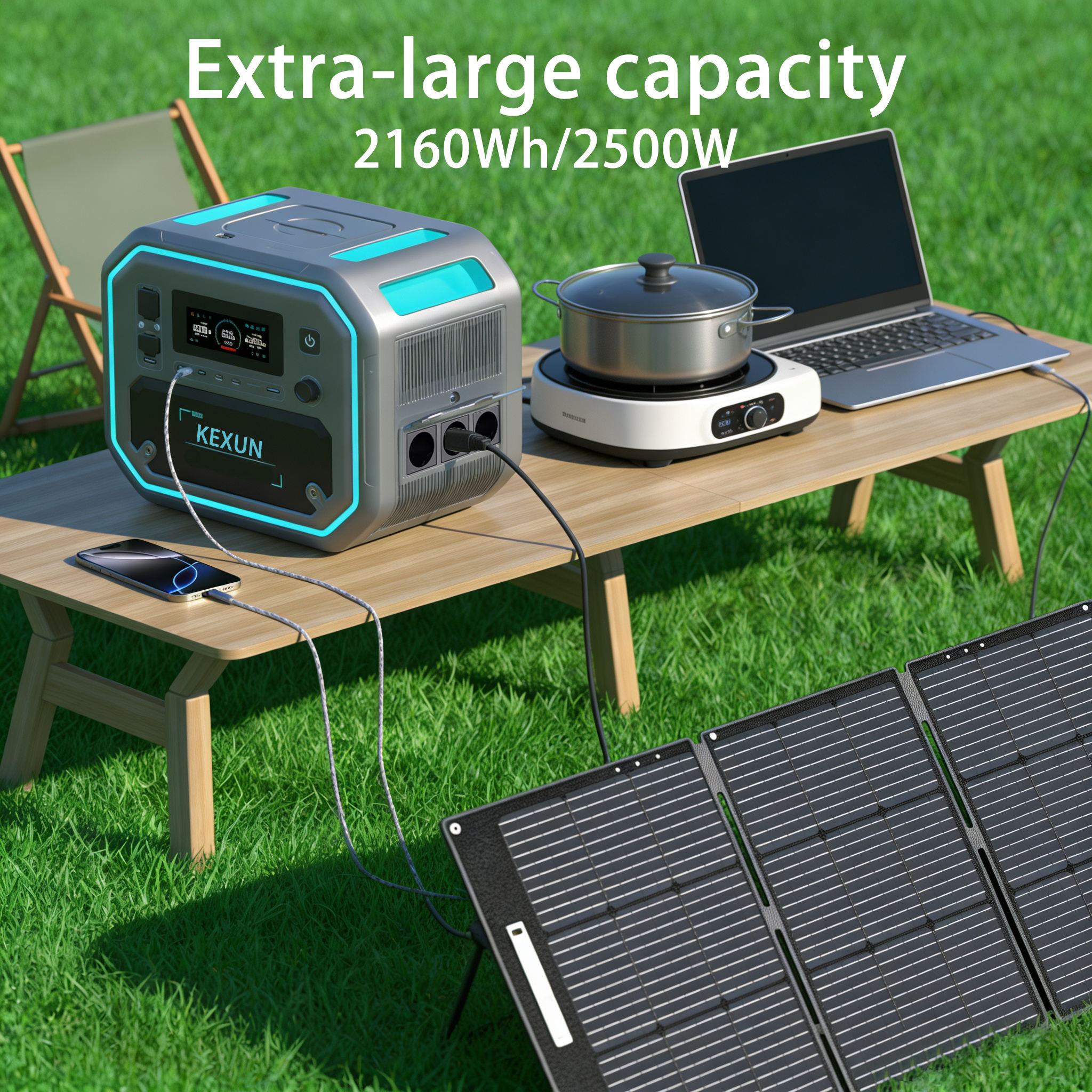 2500W Outdoor Portable Power Station with Solar Charging Capability for Camping Computer and Household Appliance Power Supply
