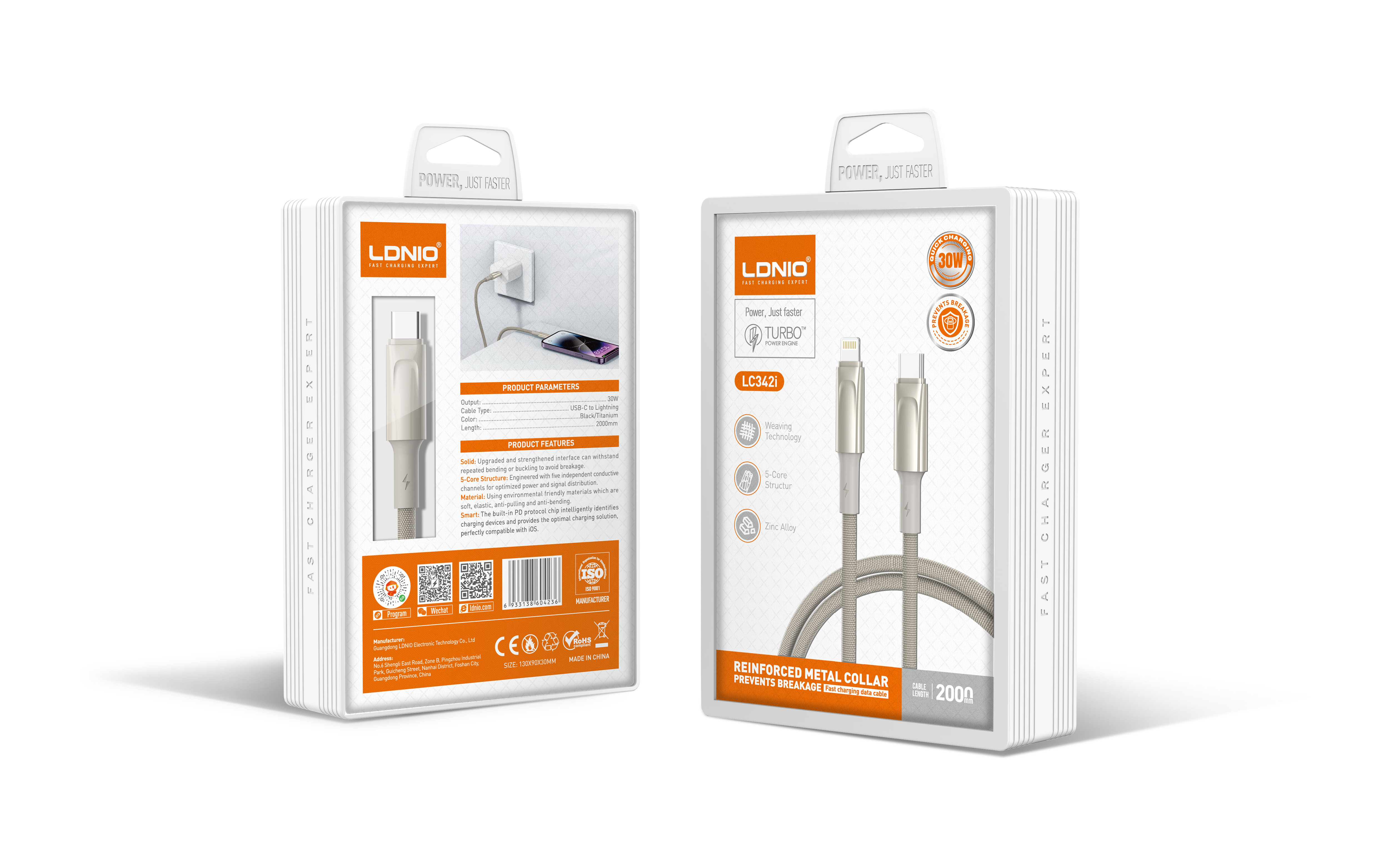 LDNIO--Data Cable-LC342i 2M/30W REINFORCED METAL COLLAR