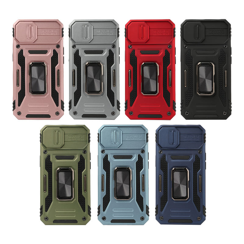 Shockproof PC Phone Case for iphone 13,Mobile Phone Protector Carcasas with Ring Bracket Cover Case for Men Black Red
