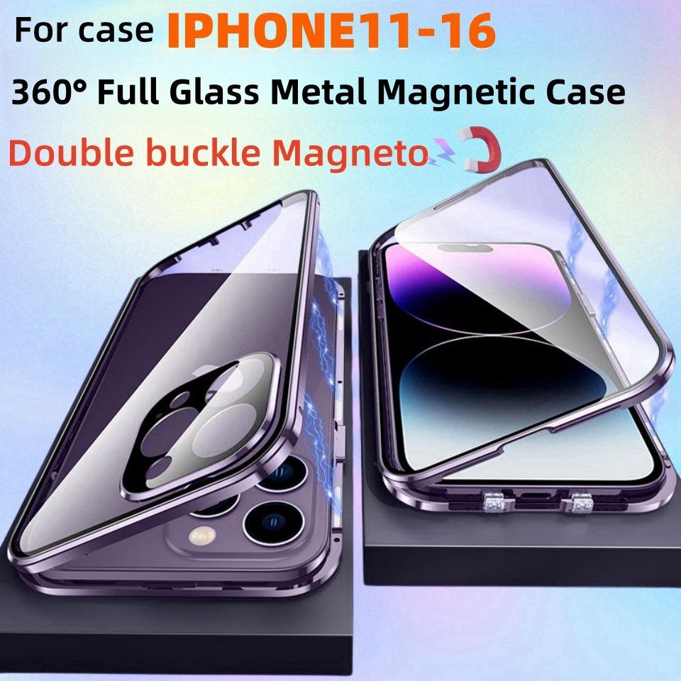 Double Side Privacy Tempered Glass Case Magnetic Metal 360 Protect for Iphone 16 15 14 13 Pro Max Clear Full Lens Coverage