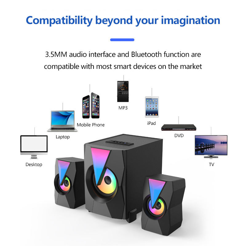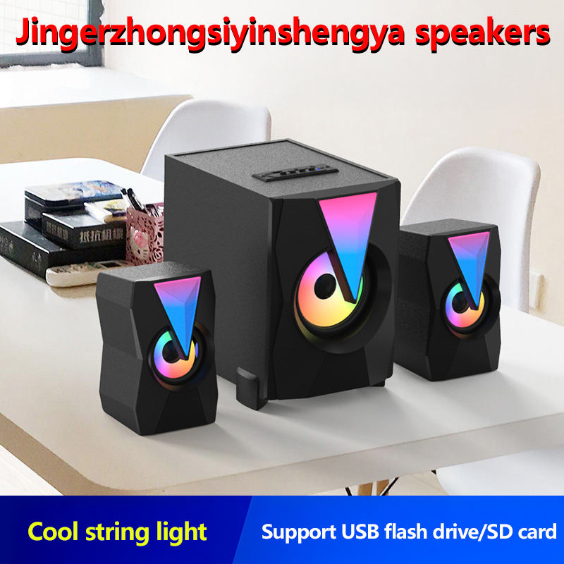 DM Wooden 2.1 Speaker Colorful Illuminated Subwoofer Card USB Drive Active Multi-function Multimedia Speaker