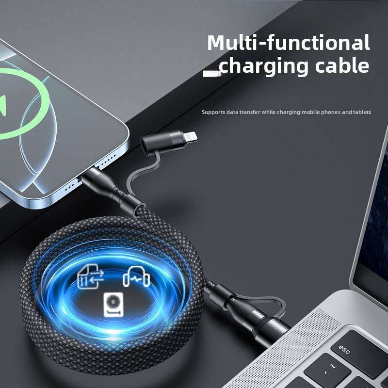 HAI CHUAN ELECTRONIC--Factory Wholesale_ Magnetic Pd60w 100w 240w Woven Type Four-in-one Fast Charging Cable. Suitable For Apple