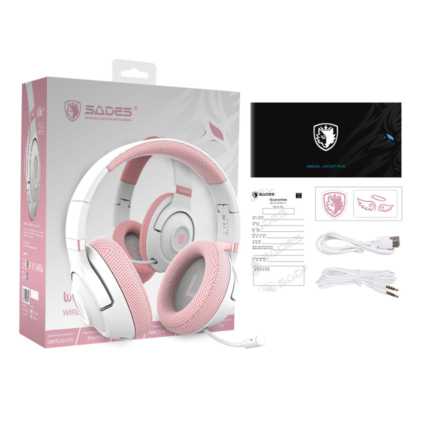 SADES Whisper Noise Cancelling Wired Wireless Gaming Headset with Retractable Mic Rgb Lights for Pc Ps5