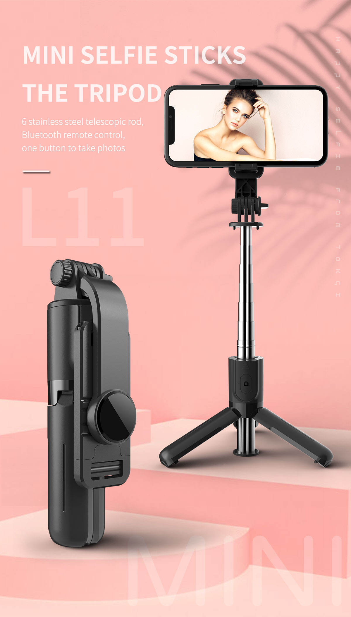 TOKQI Portable Bluetooth Remote Control Mini Selfie Stick 360 Degree Adjustable & Rotatable Stainless Steel Tripod