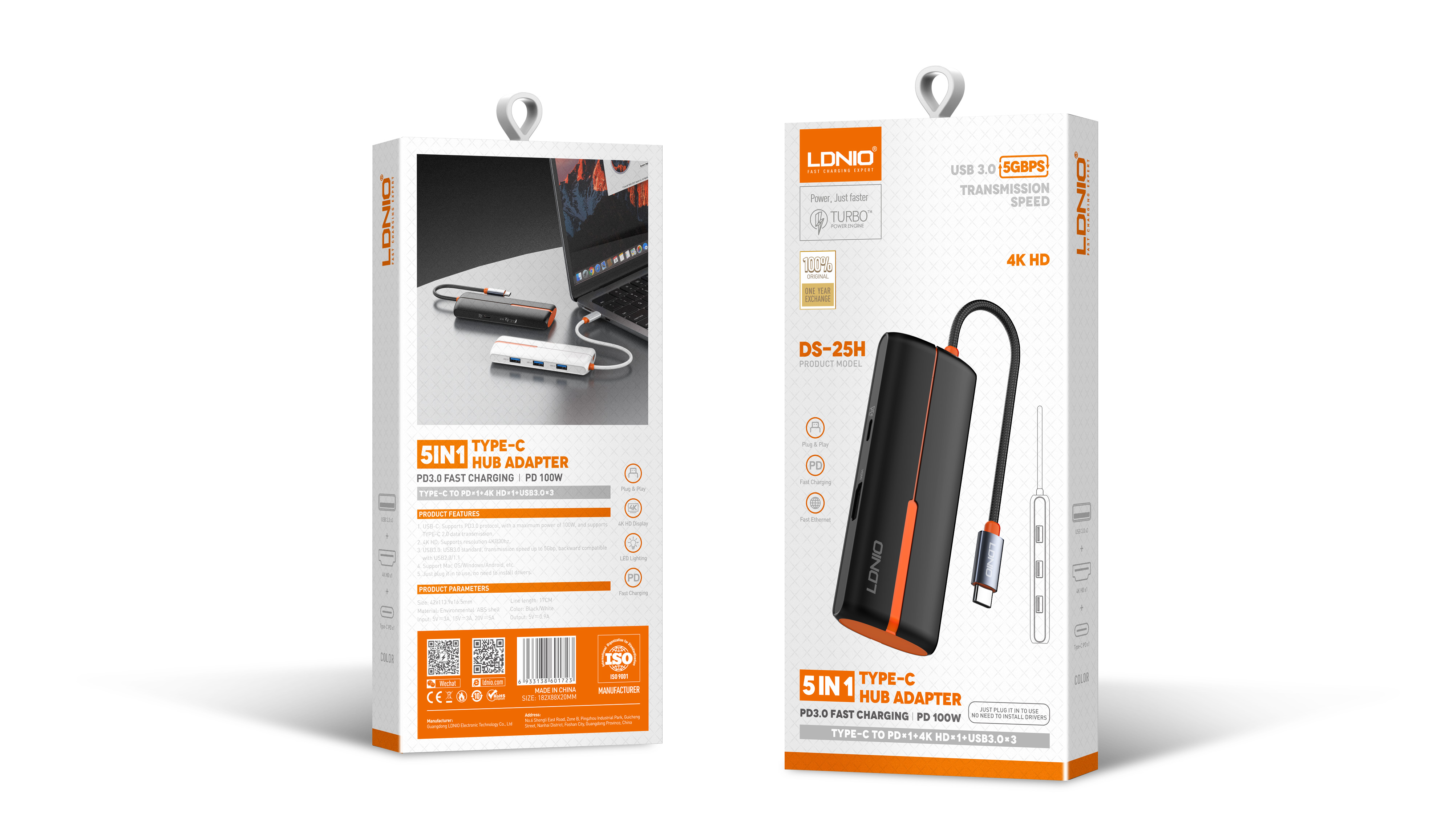 DS-25H "PD100W Type-C Multi-function Docking Station Type-C To PD*1+HDMI*1+USB3.0*3"