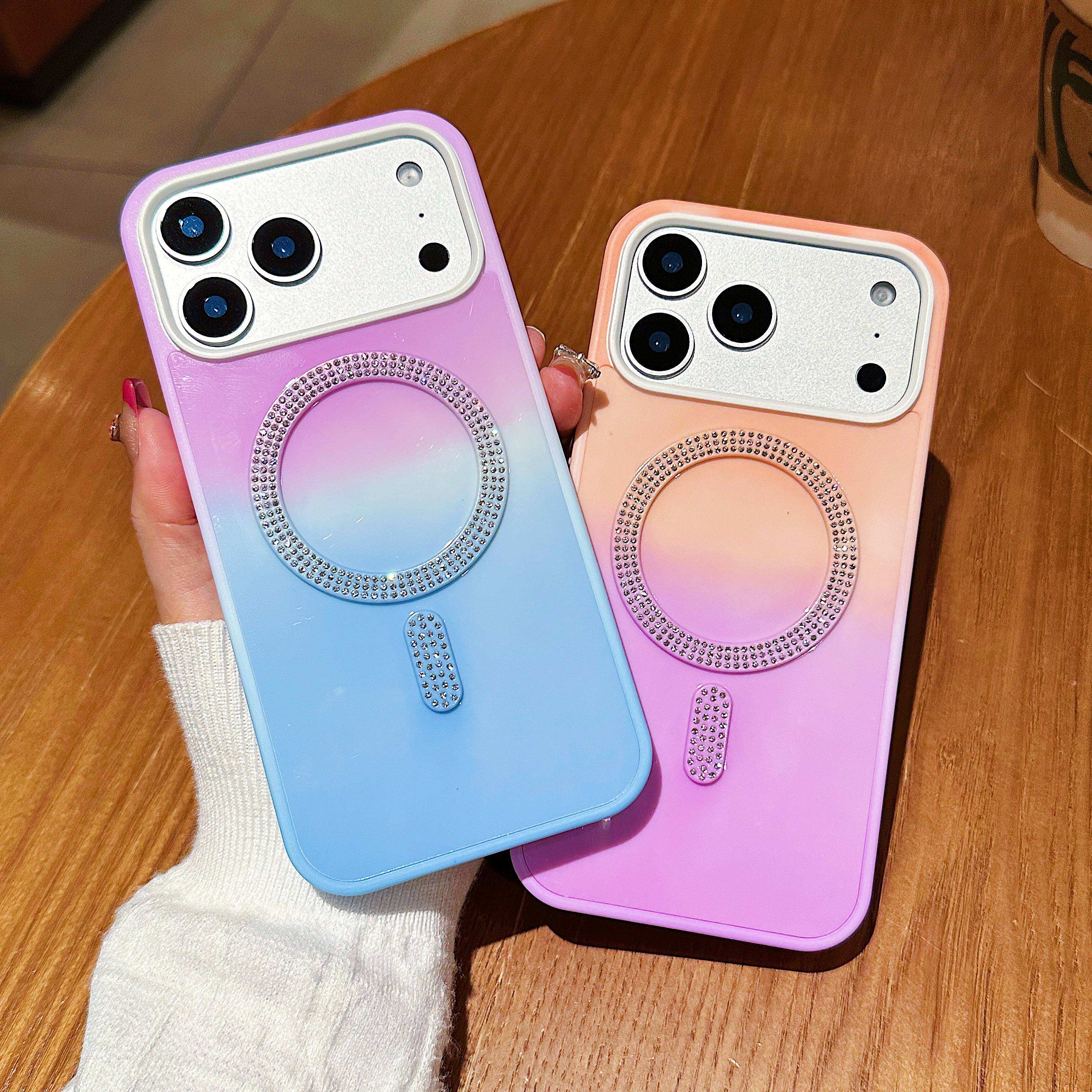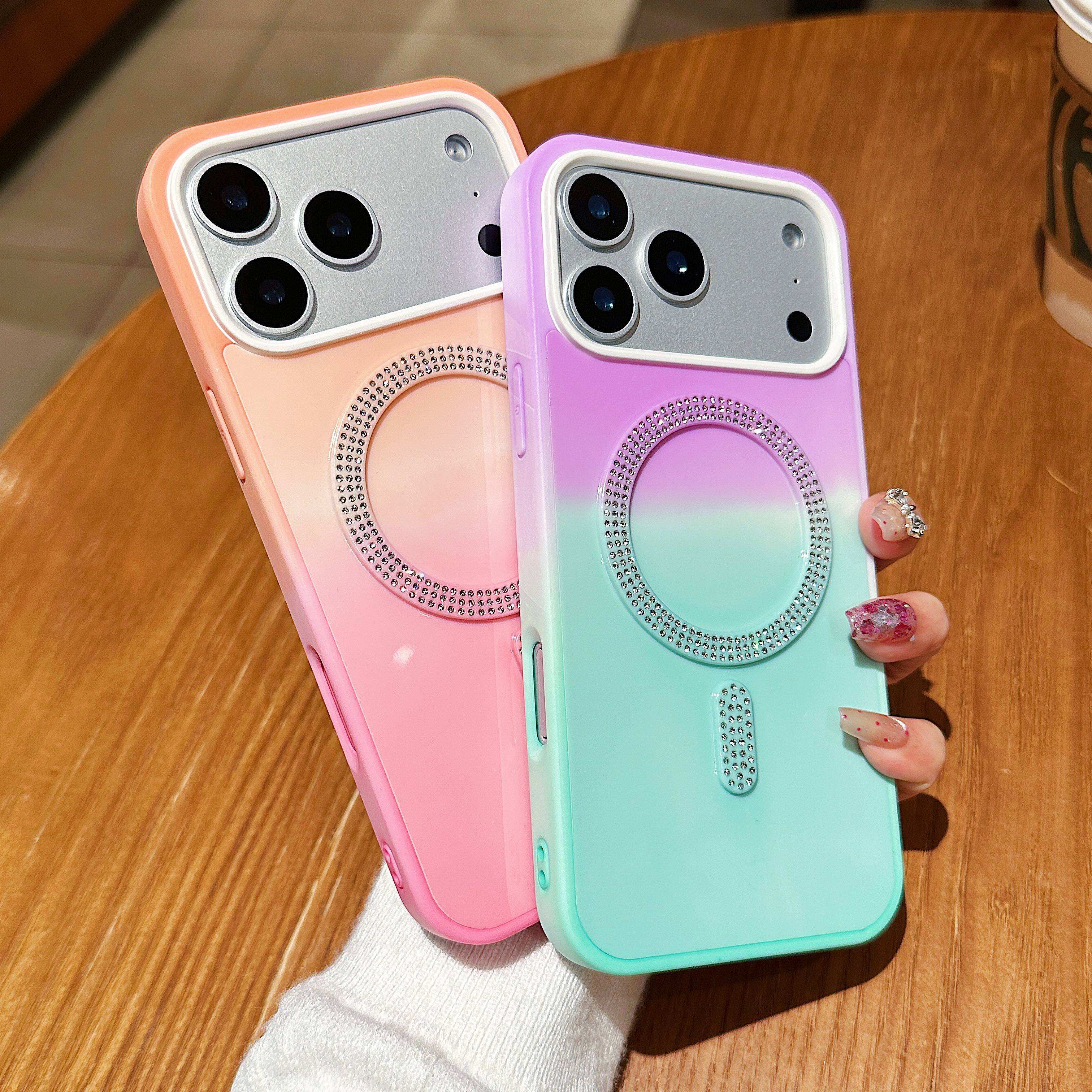 New Rainbow Color Phone Cases for iPhone 17 Pro 16 15 14 Glitter Magnetic Ring Phone Covers Fundas Para Celulares