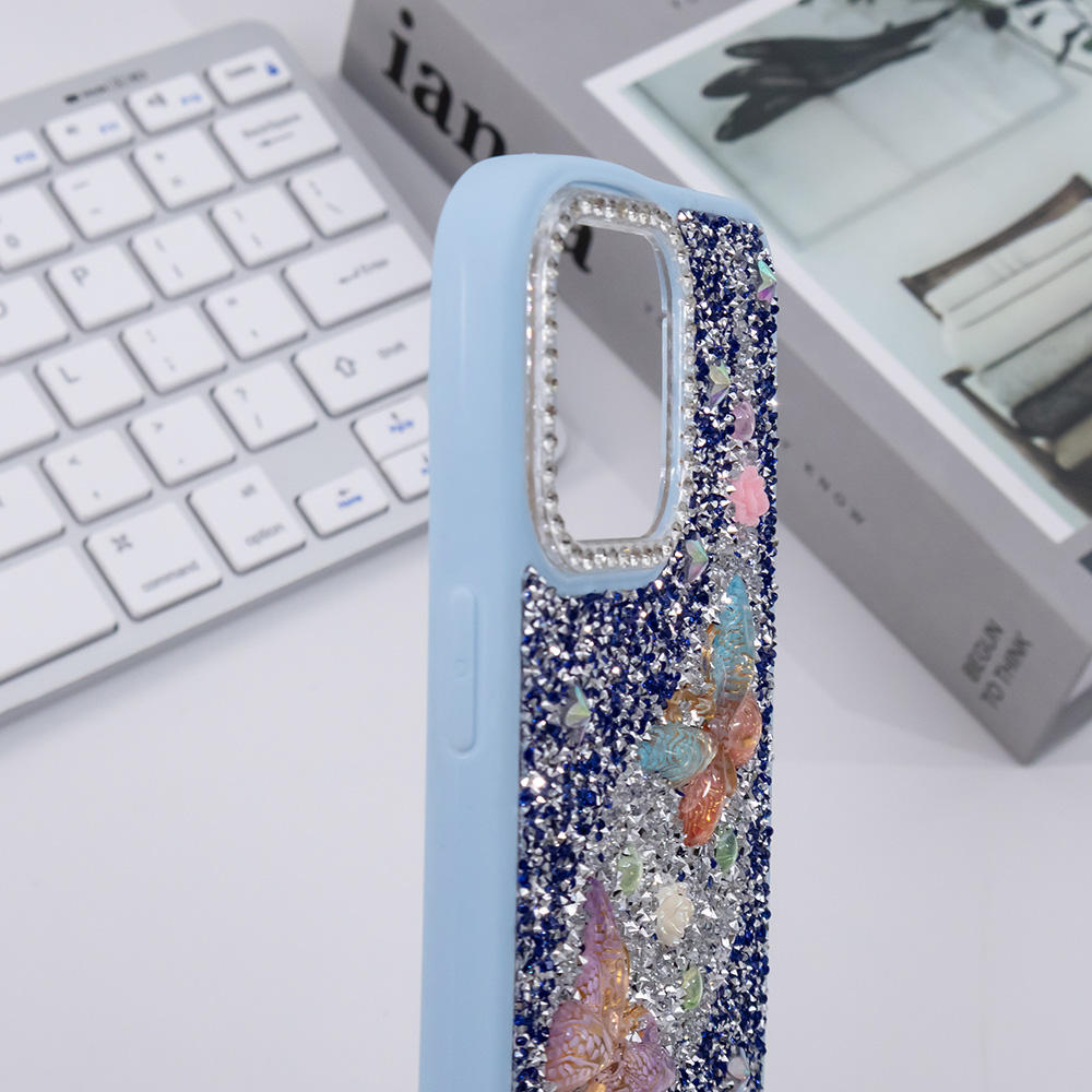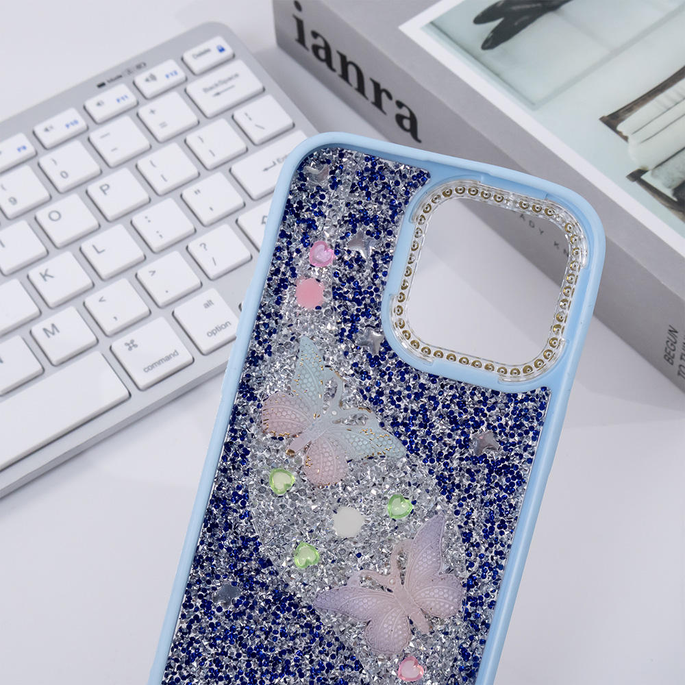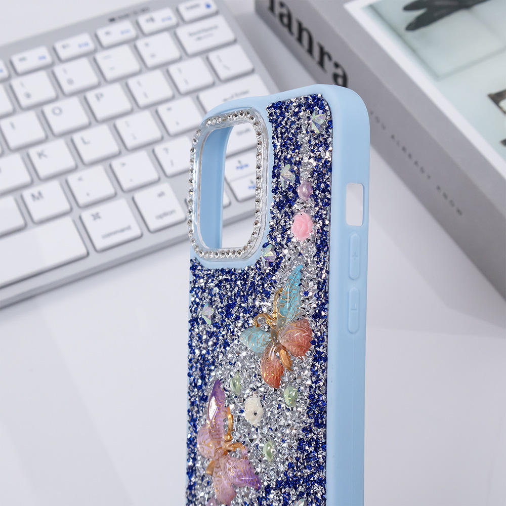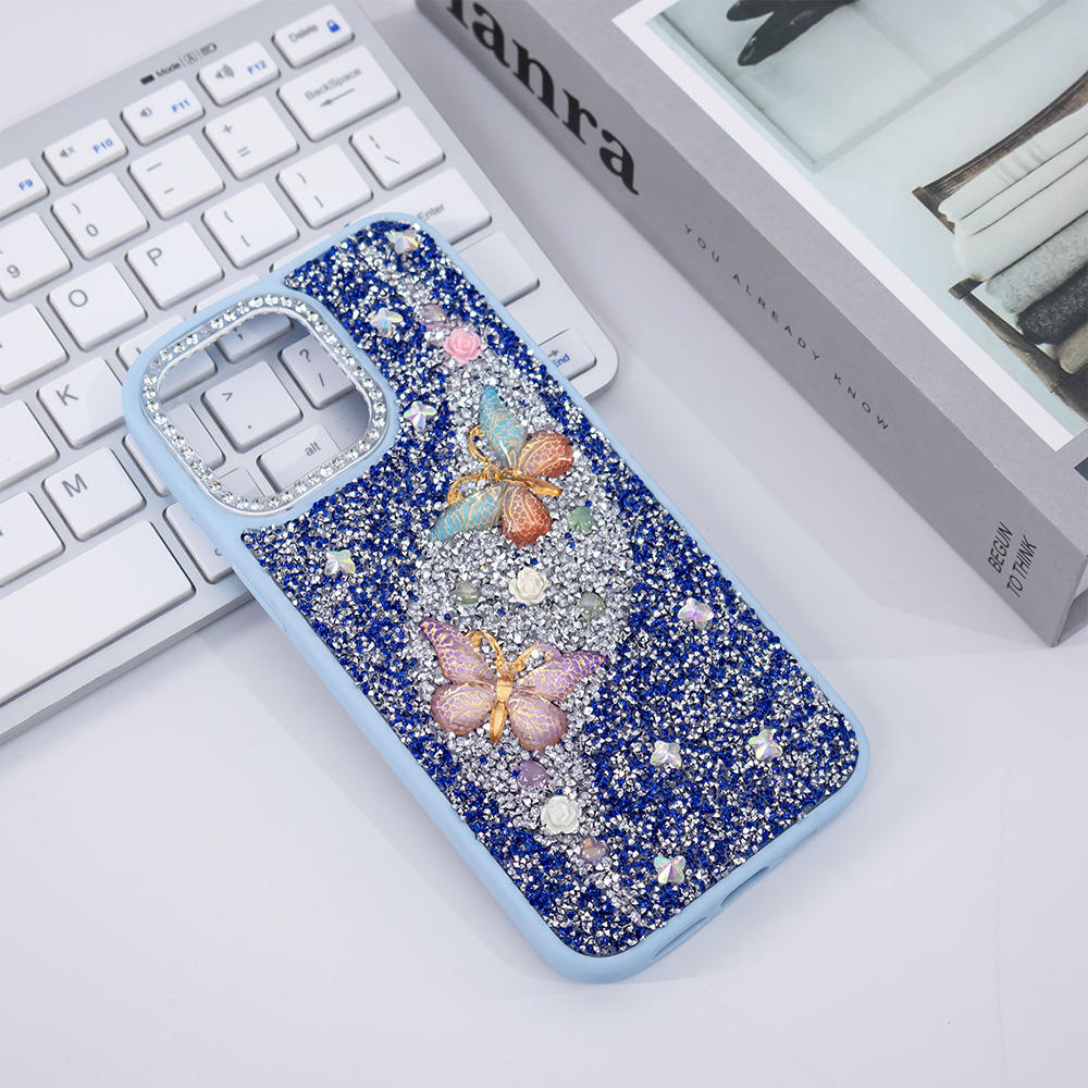 Full Diamond Mobile Phone Case for iphone 15 14 13 Glitter Butterfly Girls Back Cover Fundas Protector De Celular Estuches Forro