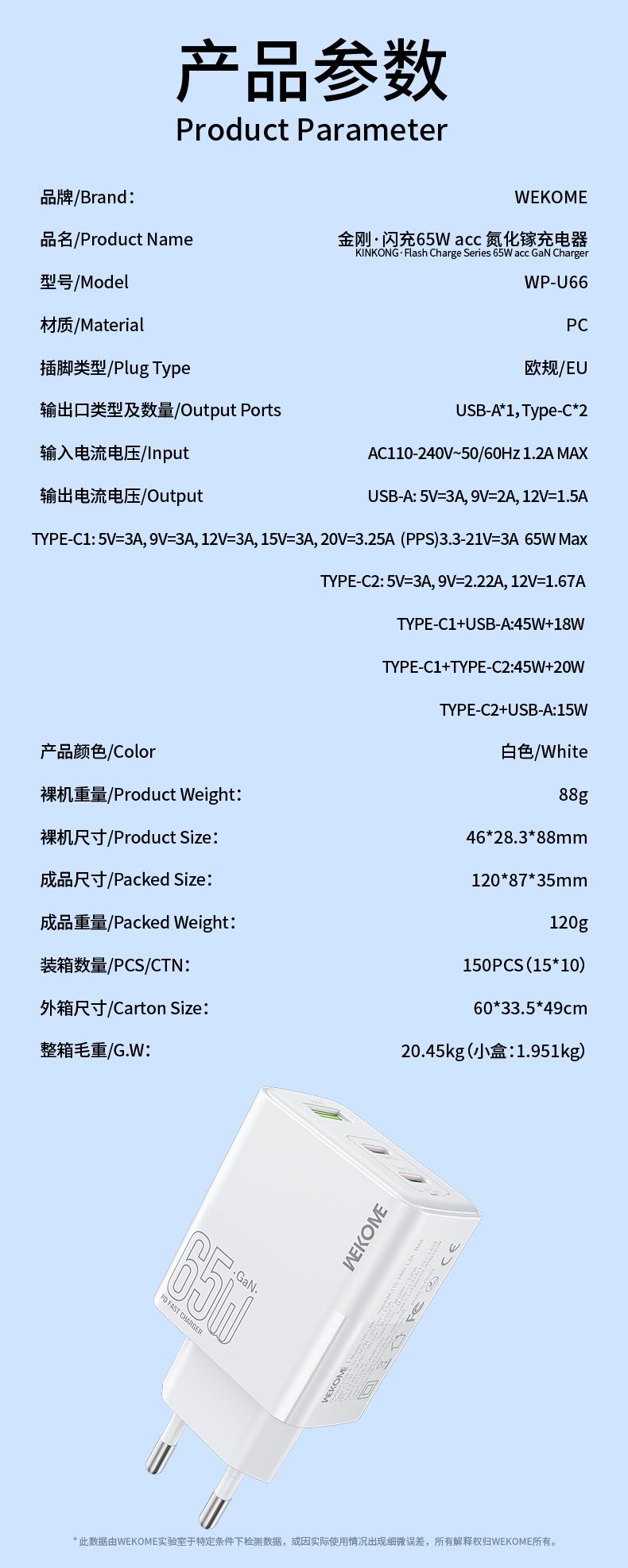 WP-U66 65W A+2C KINKING Flash Charge series GaN Charger UK