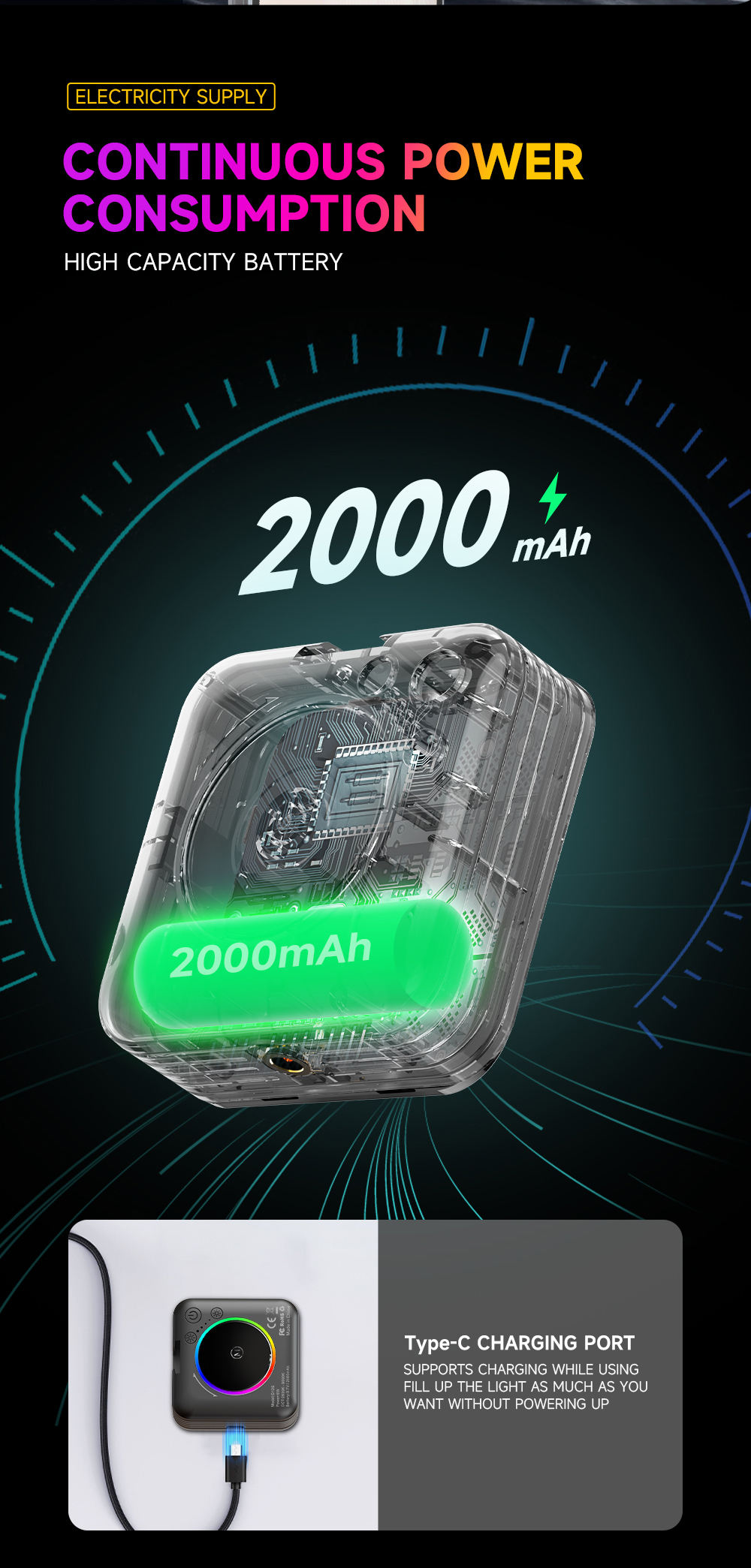VEN-DENS High Quality 300mah Type-C/IP port 2 in 1...
