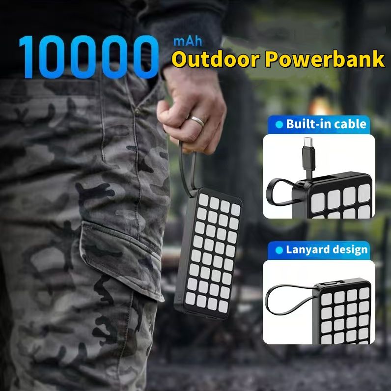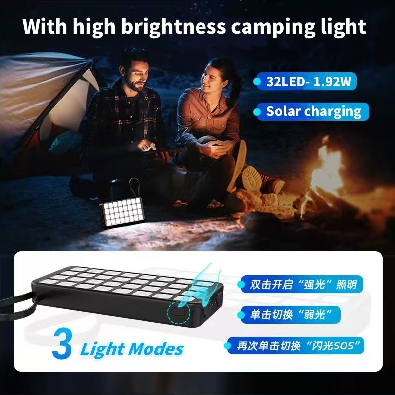 10000mAh Waterproof Solar Powerbank Multifunctional Dual USB Ports Solar Charger LED Light Power Bank for Camping Outdoor