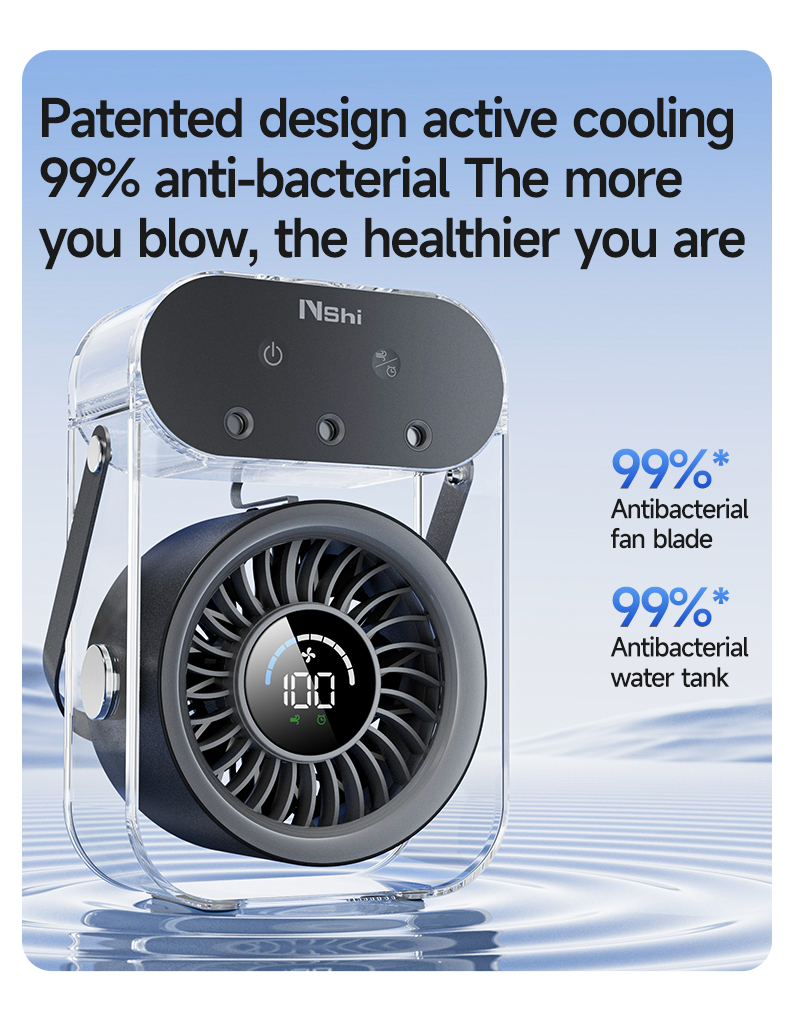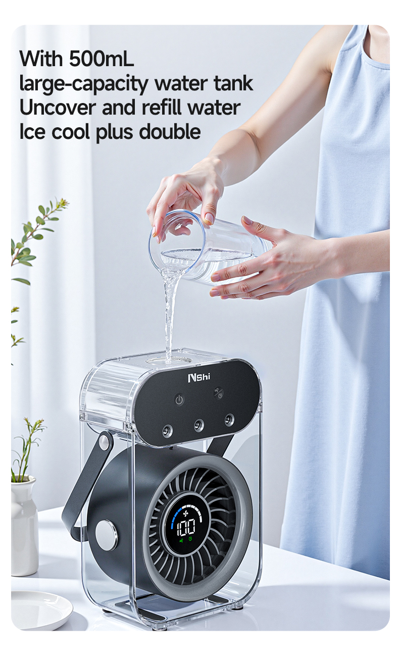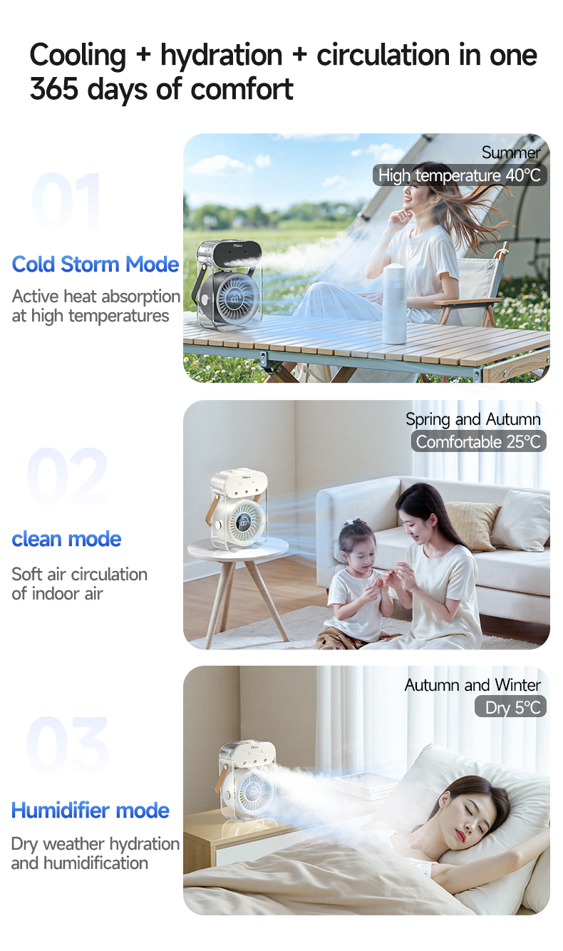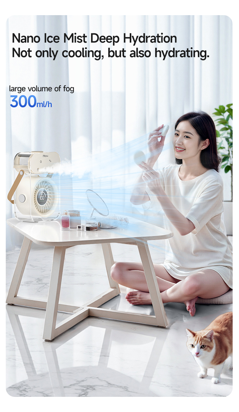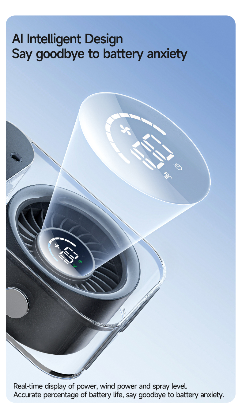 Modern 4000mAh Rechargeable Portable Personal Timing Cooling Misting Fan Three Spray Modes Black Mist Fan with Three Nozzles