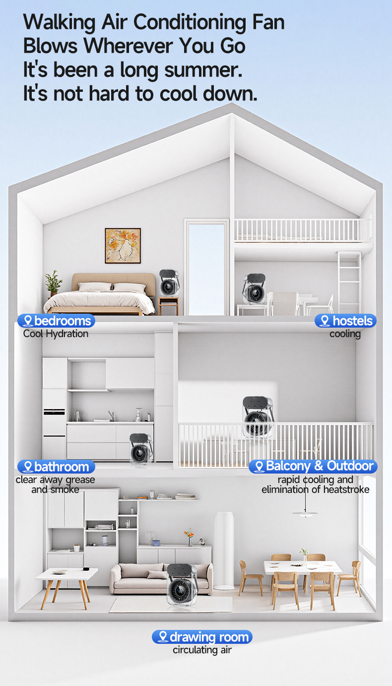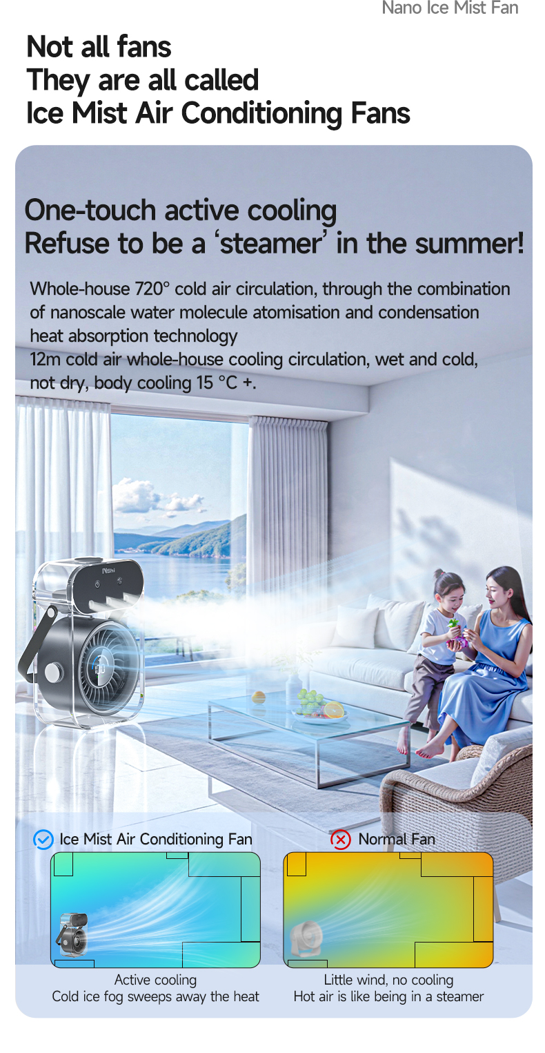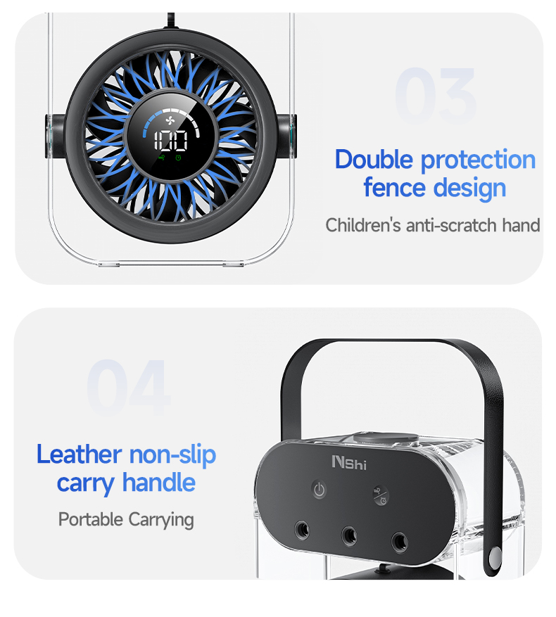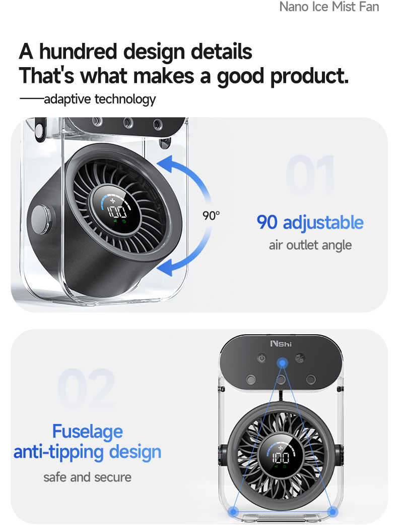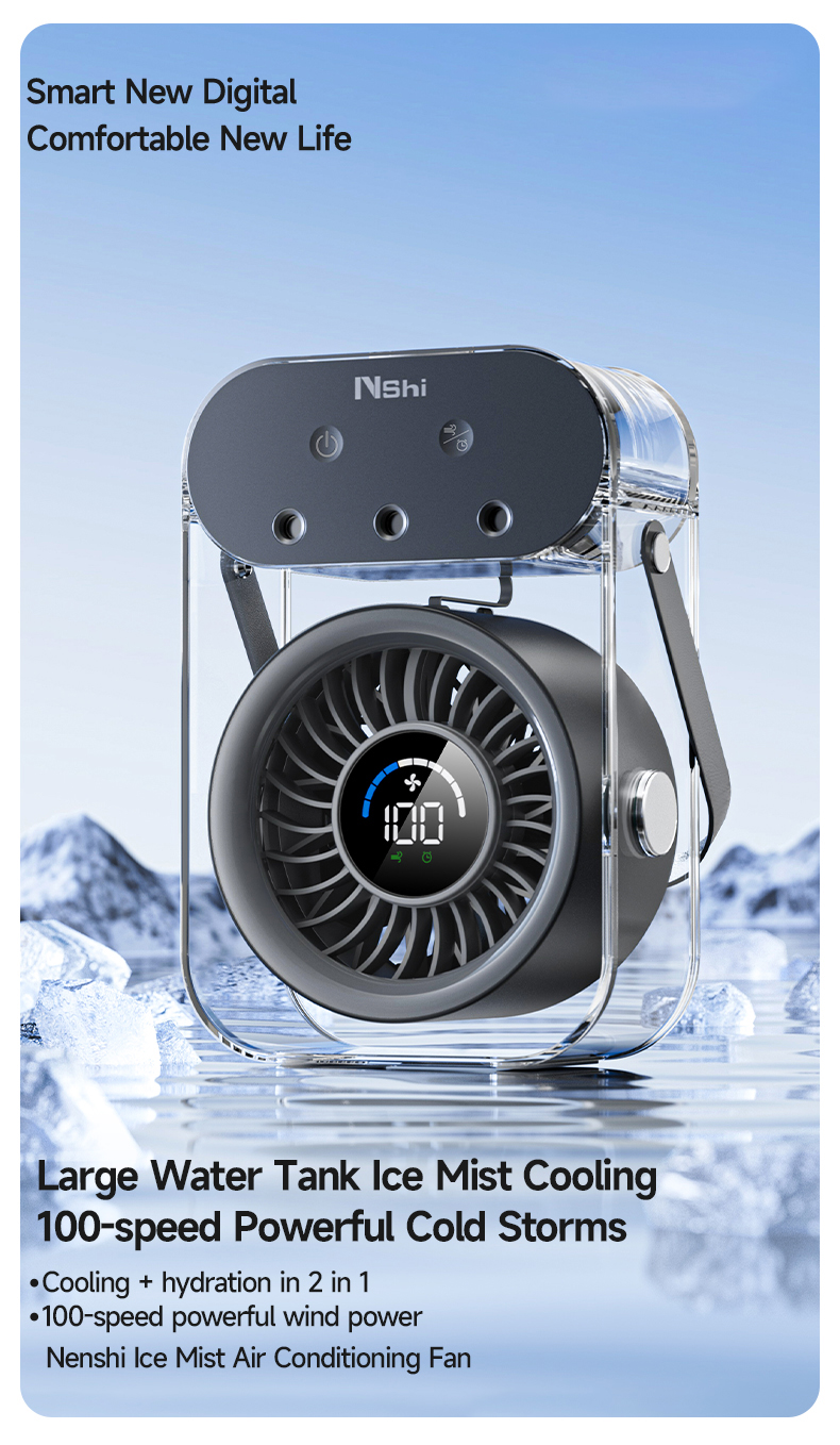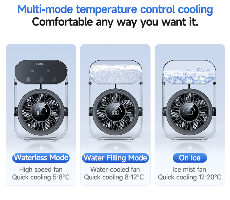Modern 4000mAh Rechargeable Portable Personal Timing Cooling Misting Fan Three Spray Modes Black Mist Fan with Three Nozzles