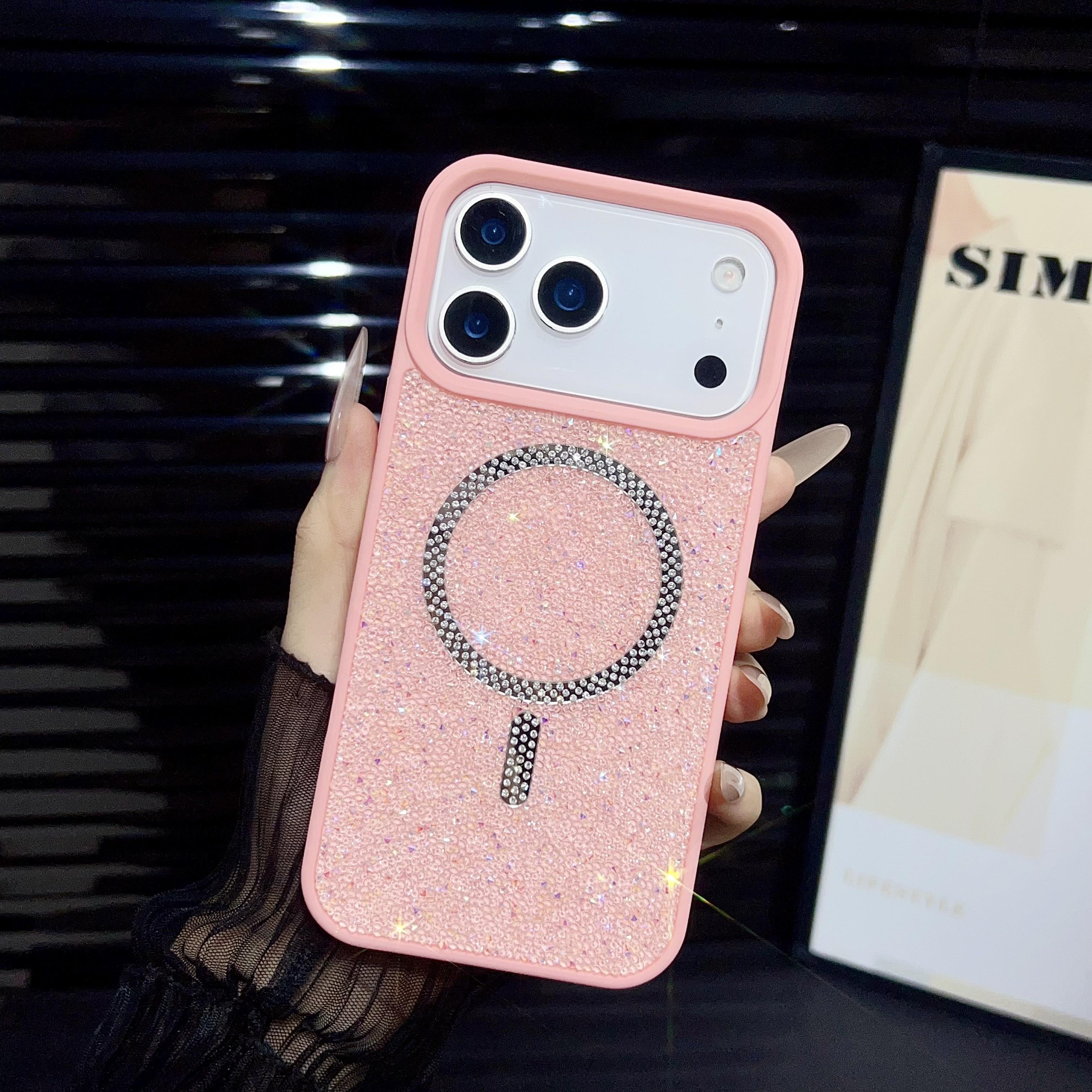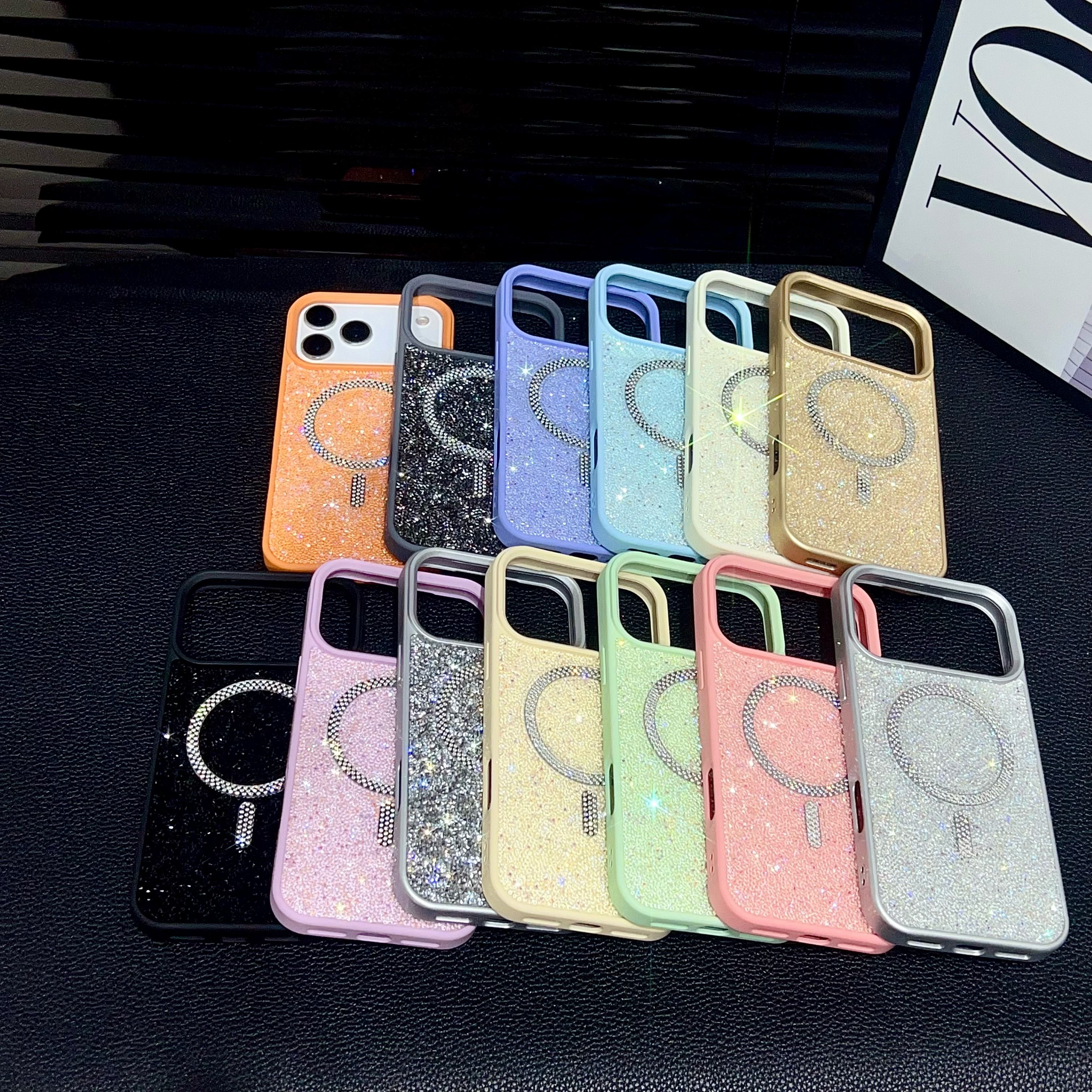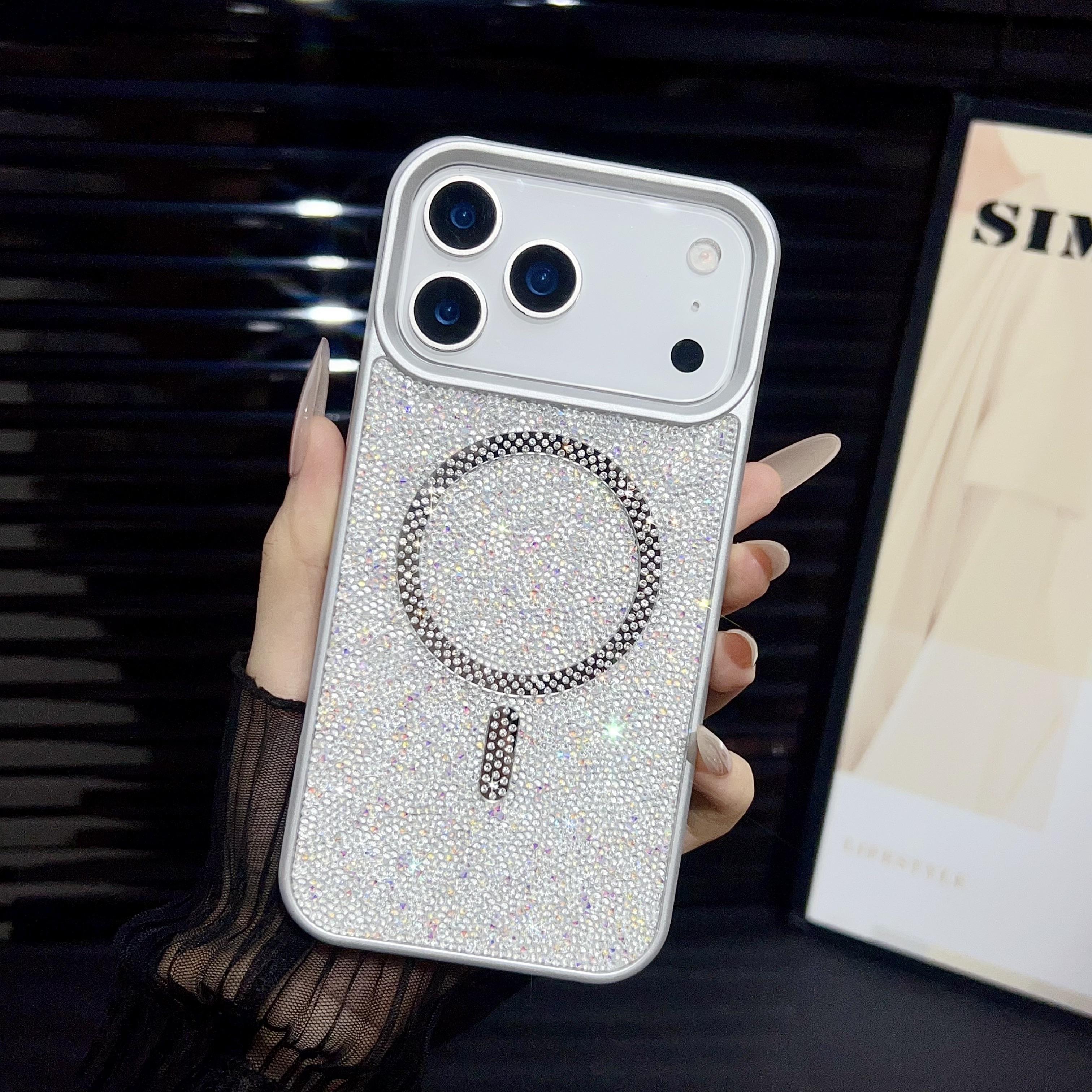 Glitter Diamond Rhinestone Phone Case for iPhone 17 16 15 14 Pro Max Air Shiny Bling Wireless Charging Magnetic Shockproof Cover