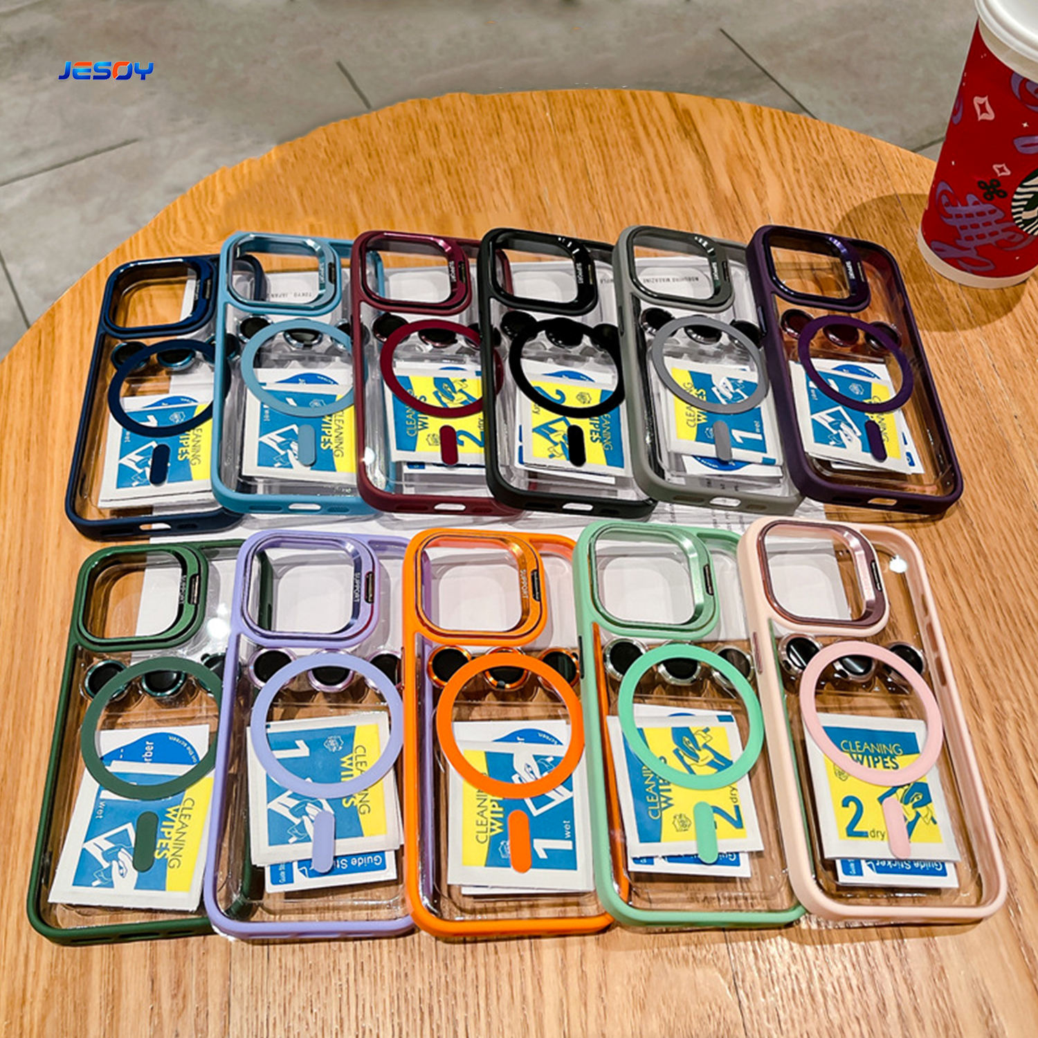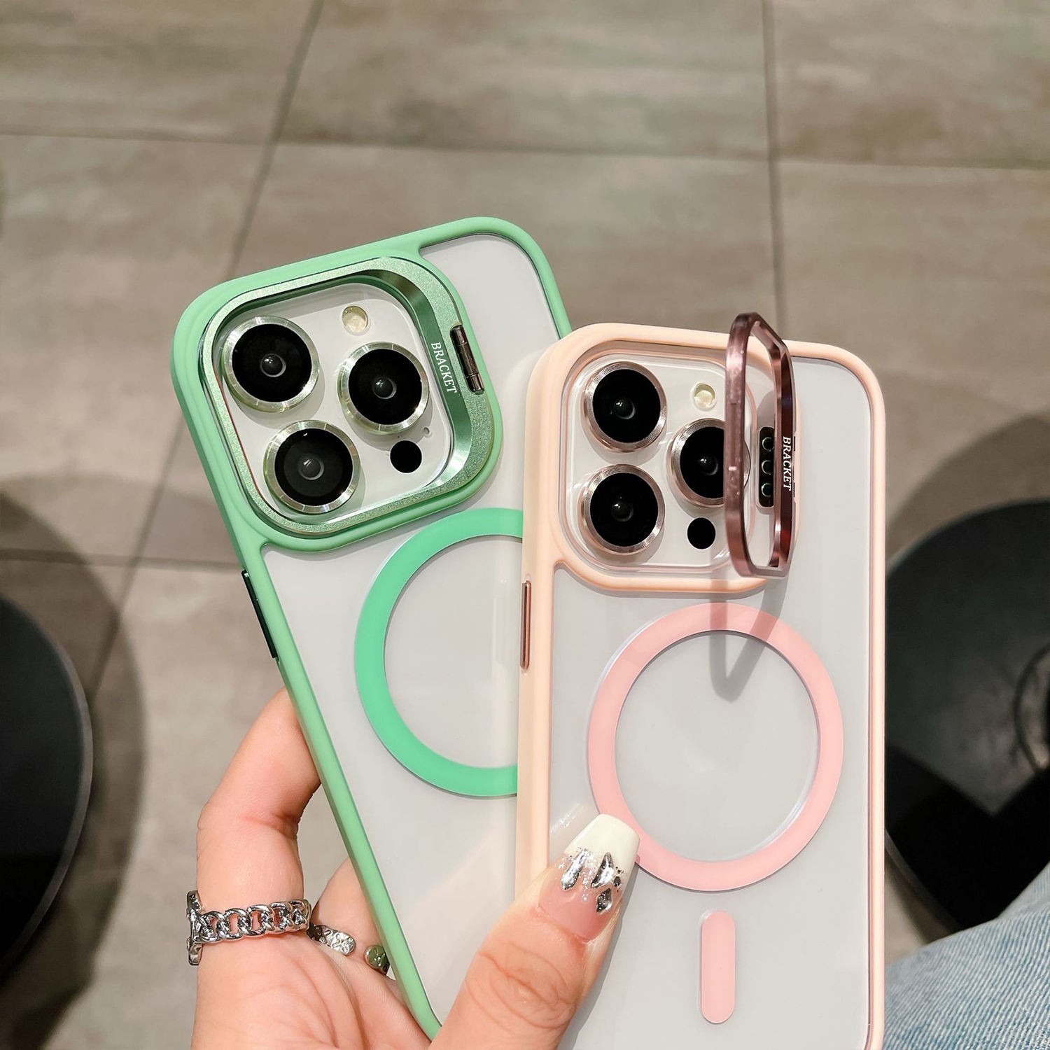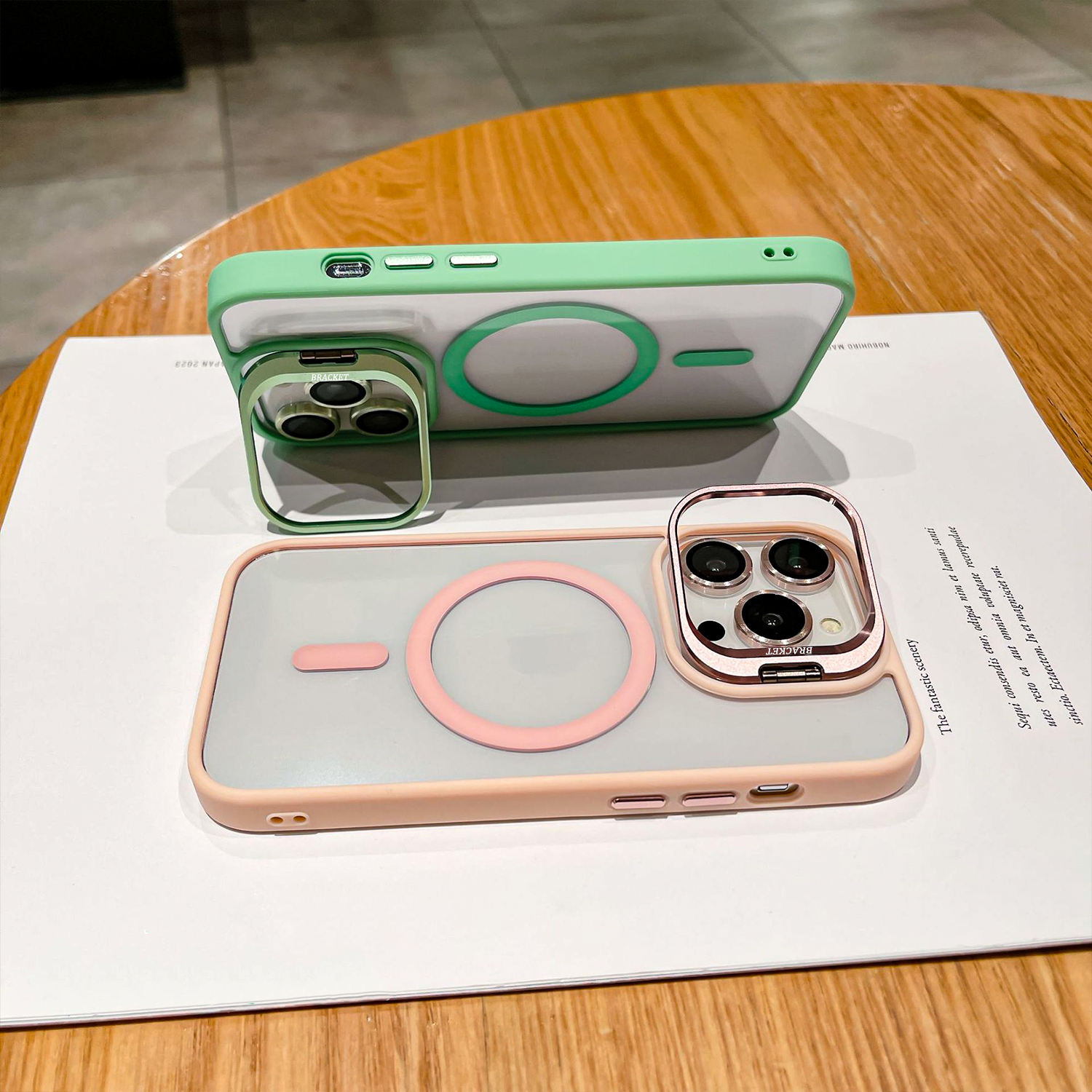 Metal Stand Matte Acrylic Transparent Magnetic Phone Case Camera Lens Film Cell Phone Case for iPhone 16 15 Pro Max