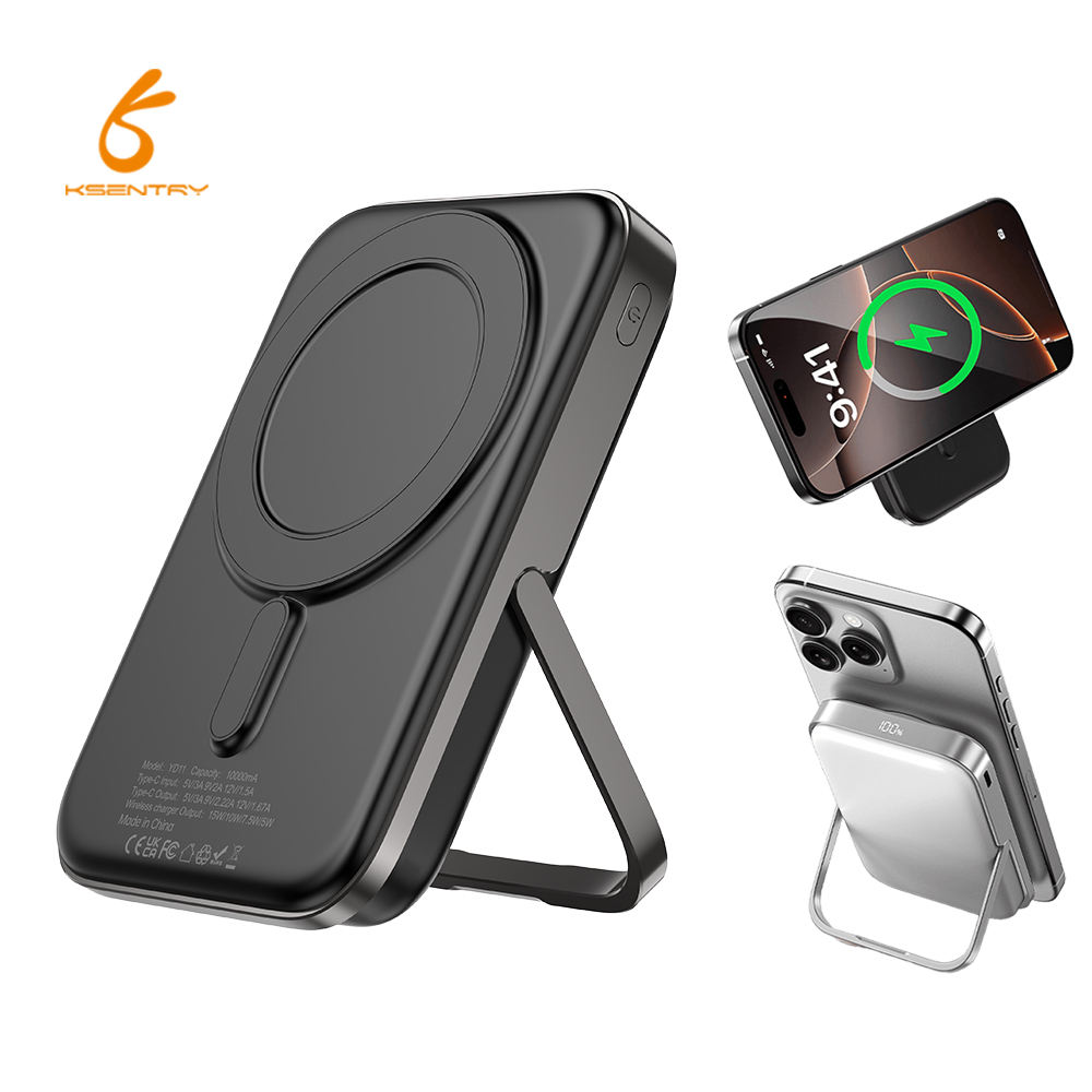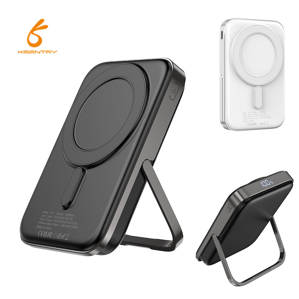 KSENTRY Wireless charging with stand Rechargeable Magnetic Ultra Thin 15w Charger 10000mah Wireless Power Bank Fast Charging