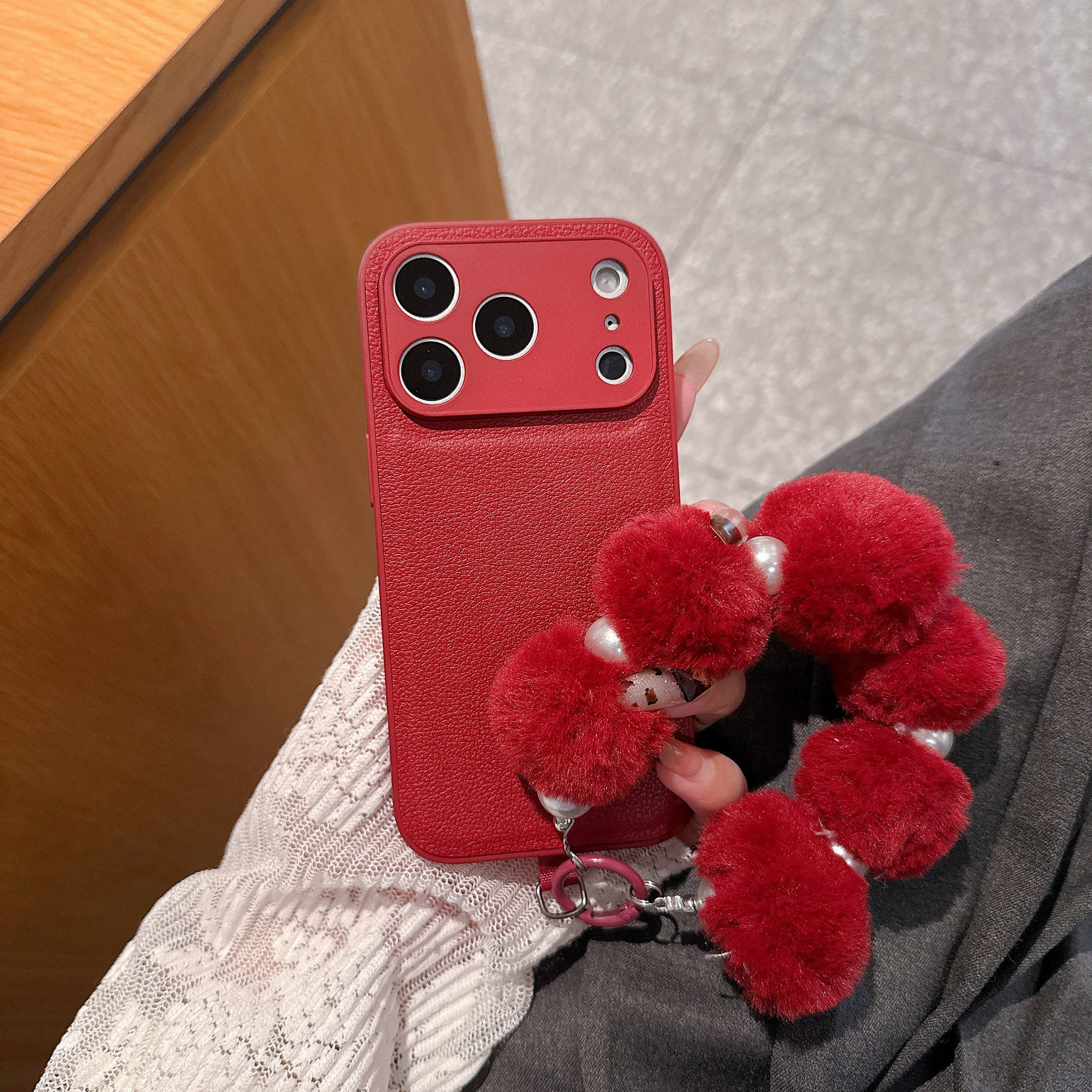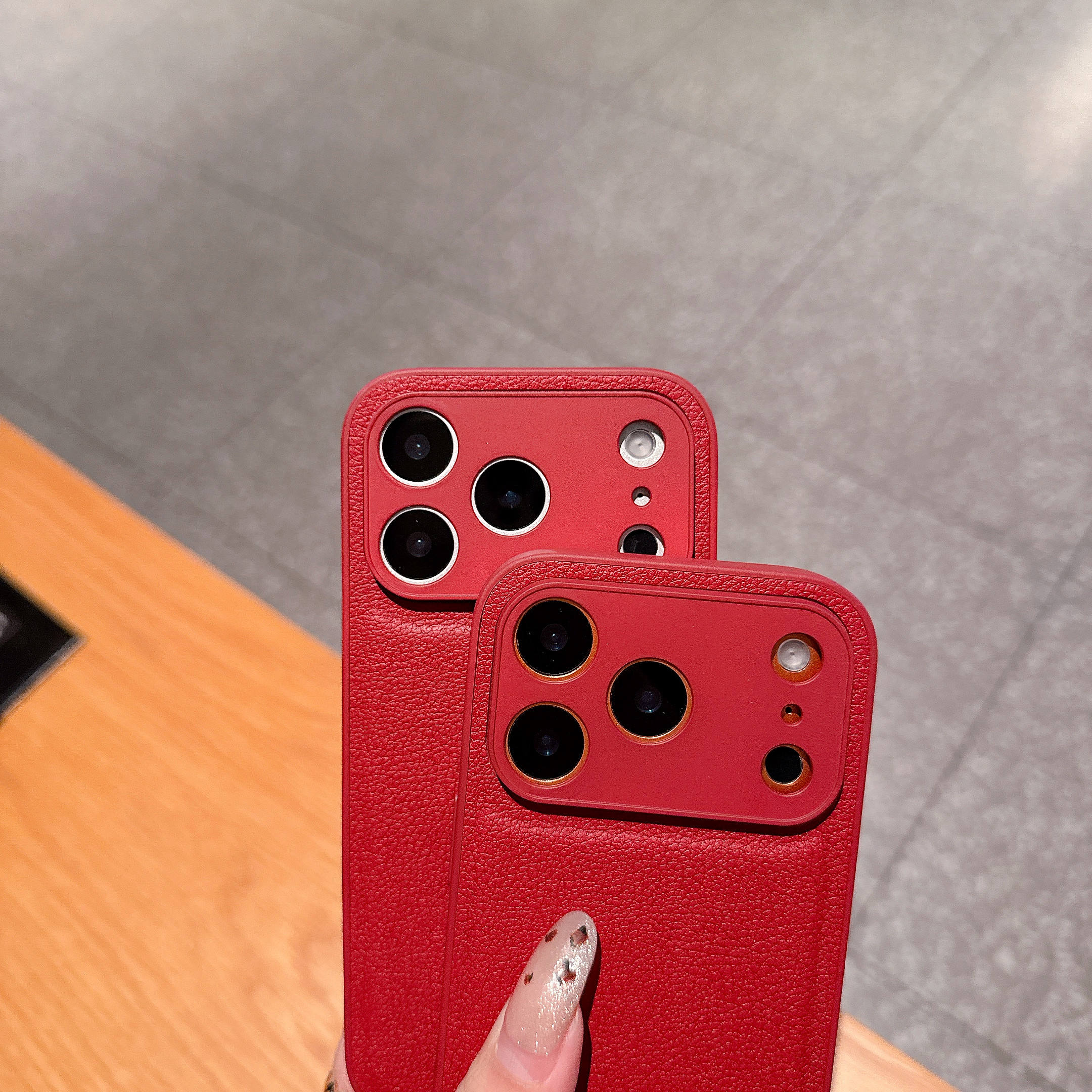 Premium Litchi Texture Anti-Fingerprint Phone Case 17 Pro Max_15_16 Series _ Solid Color Full-Camera Cover Card Holder