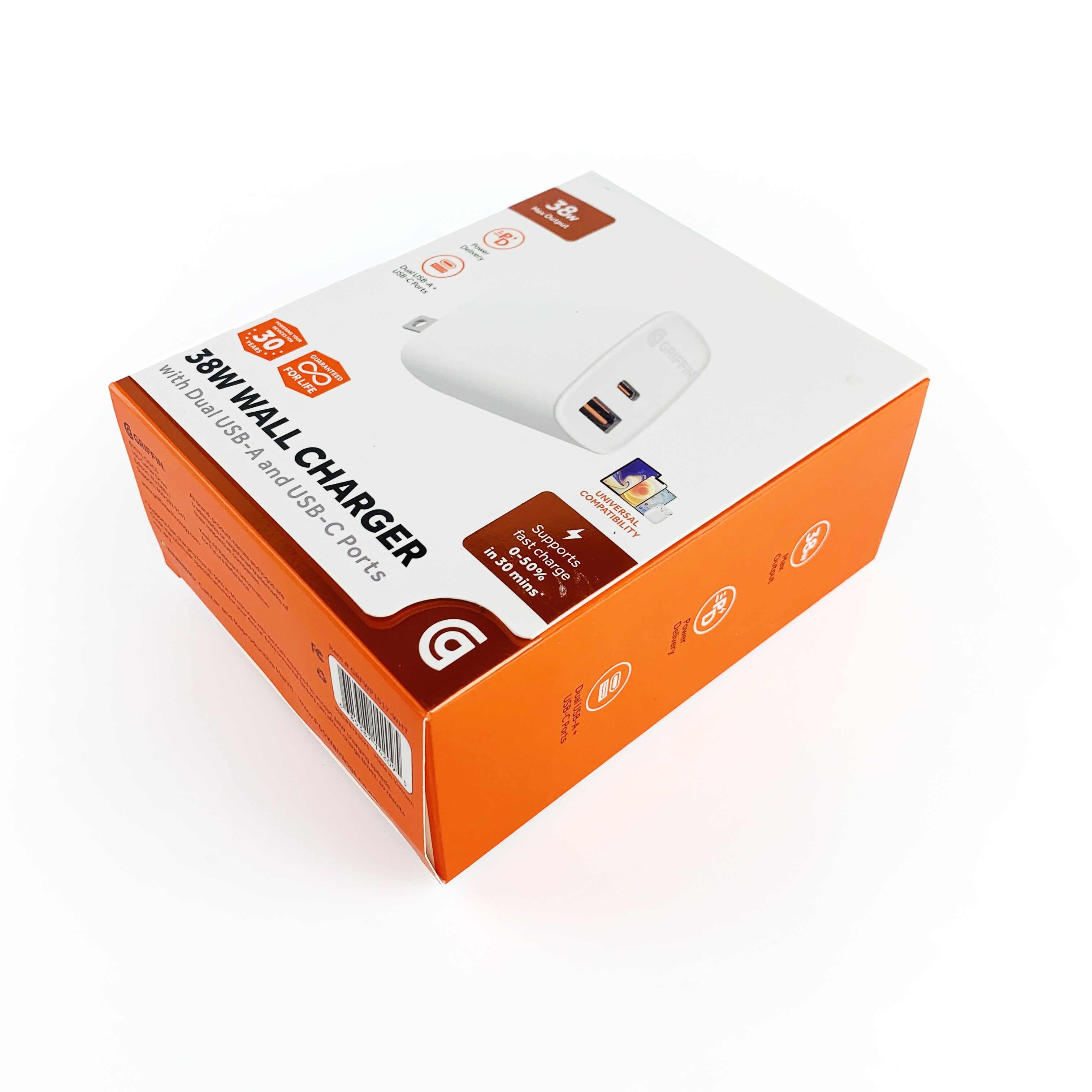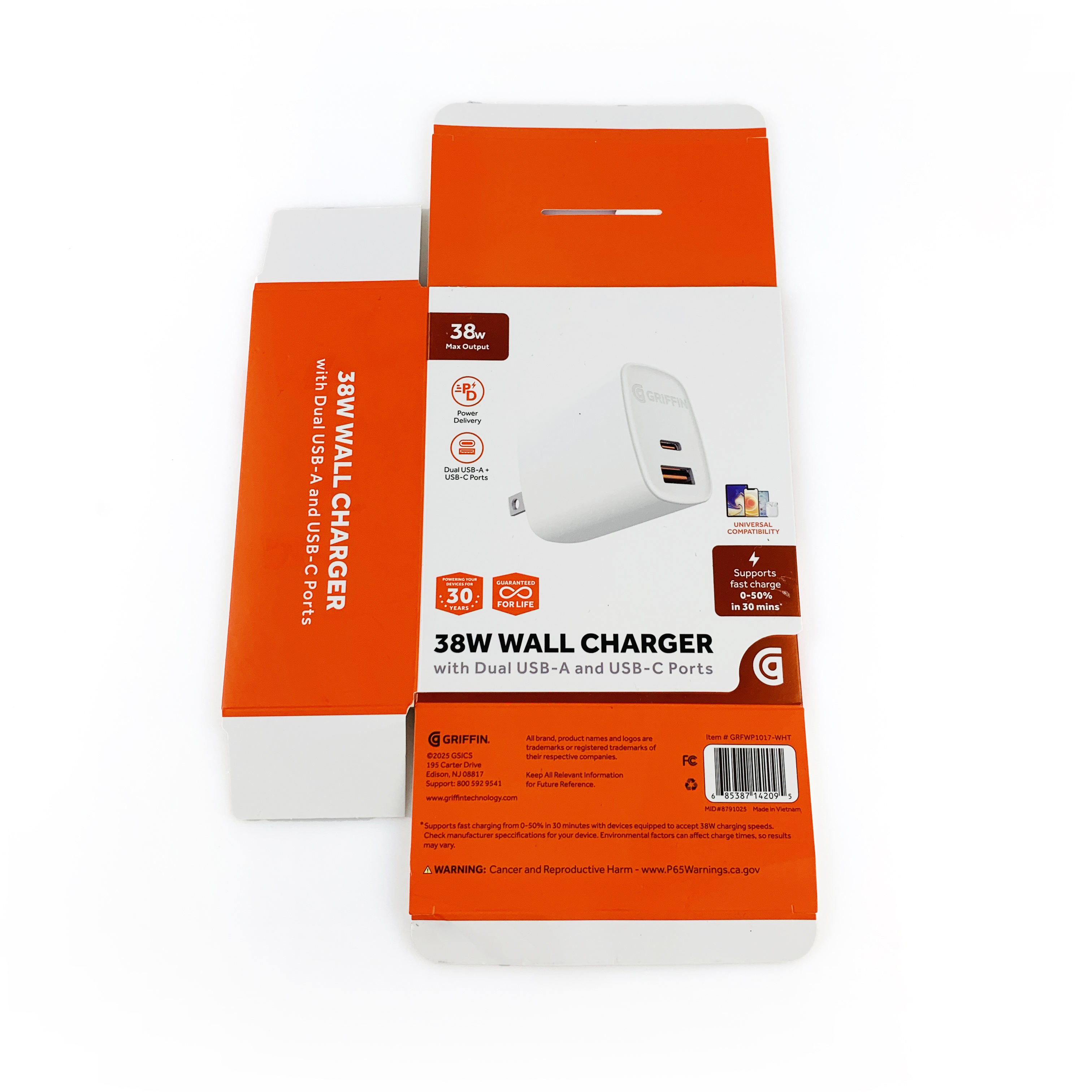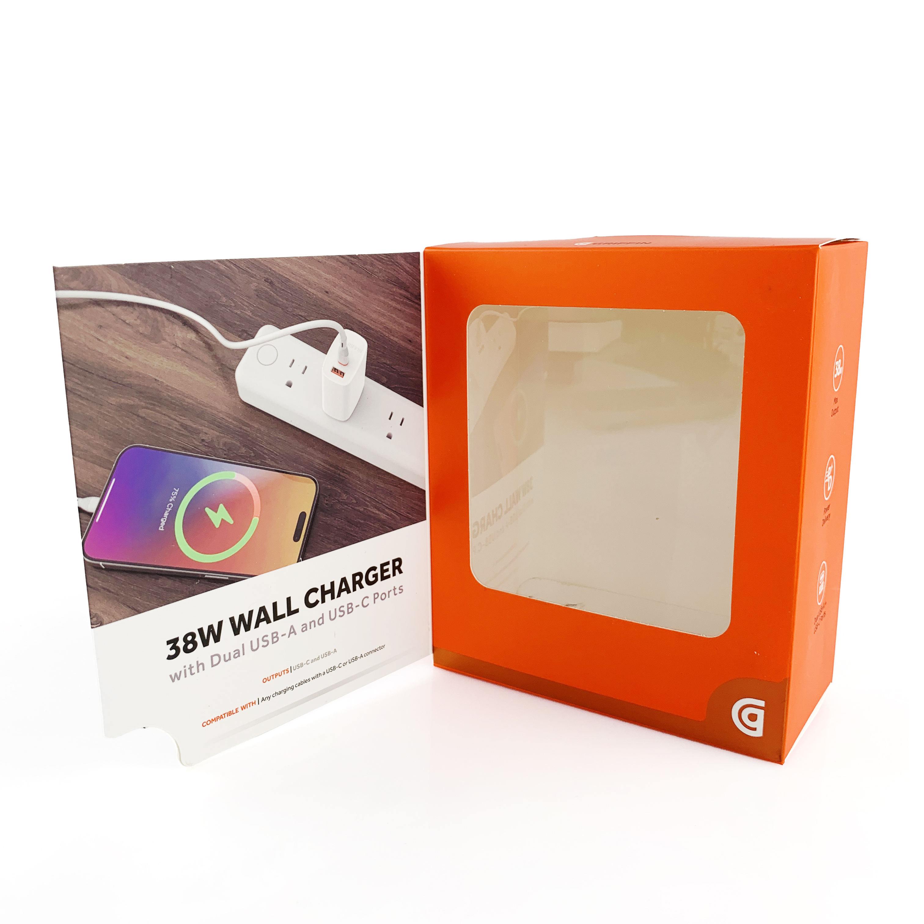 Gathe 003 Custom Design Folding Wall Charger Packaging Box USB C Power Delivery Charger Retail Box With Hook Display Window