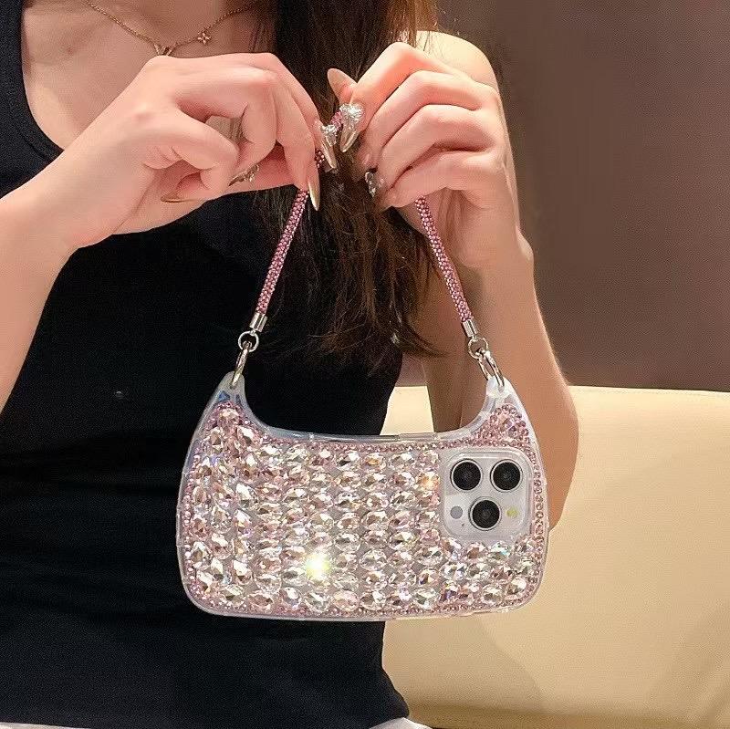 Luxury Diamond Glitter Strap Phone Bag Case for iPhone 15 Pro Max 16 14 Plus 11 12 Stylish Bling Rhinestones Cover