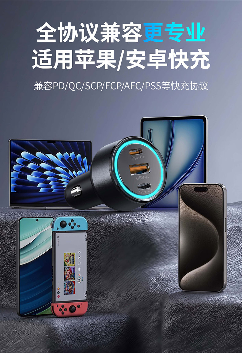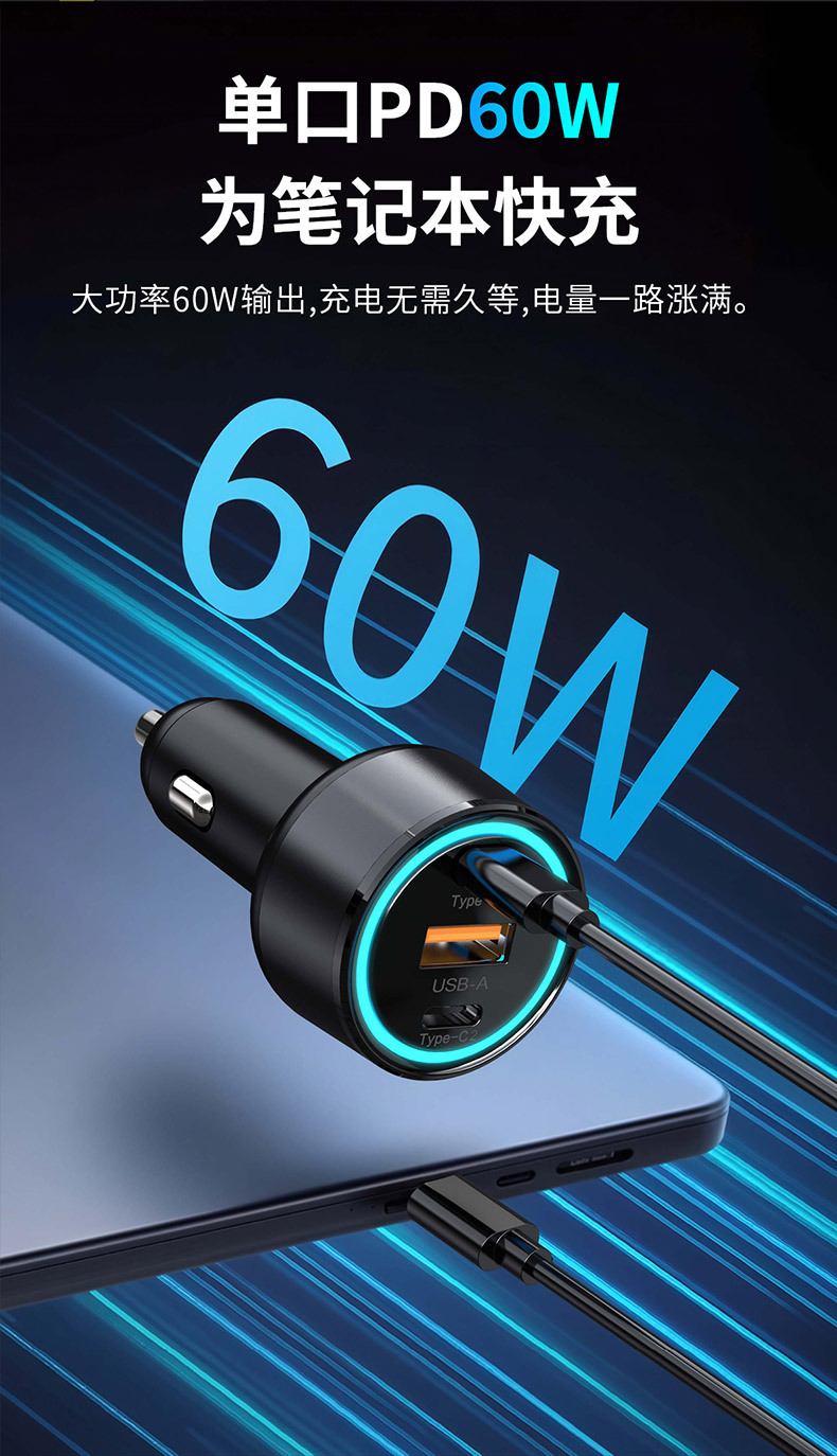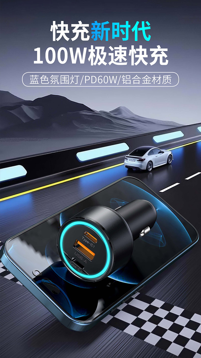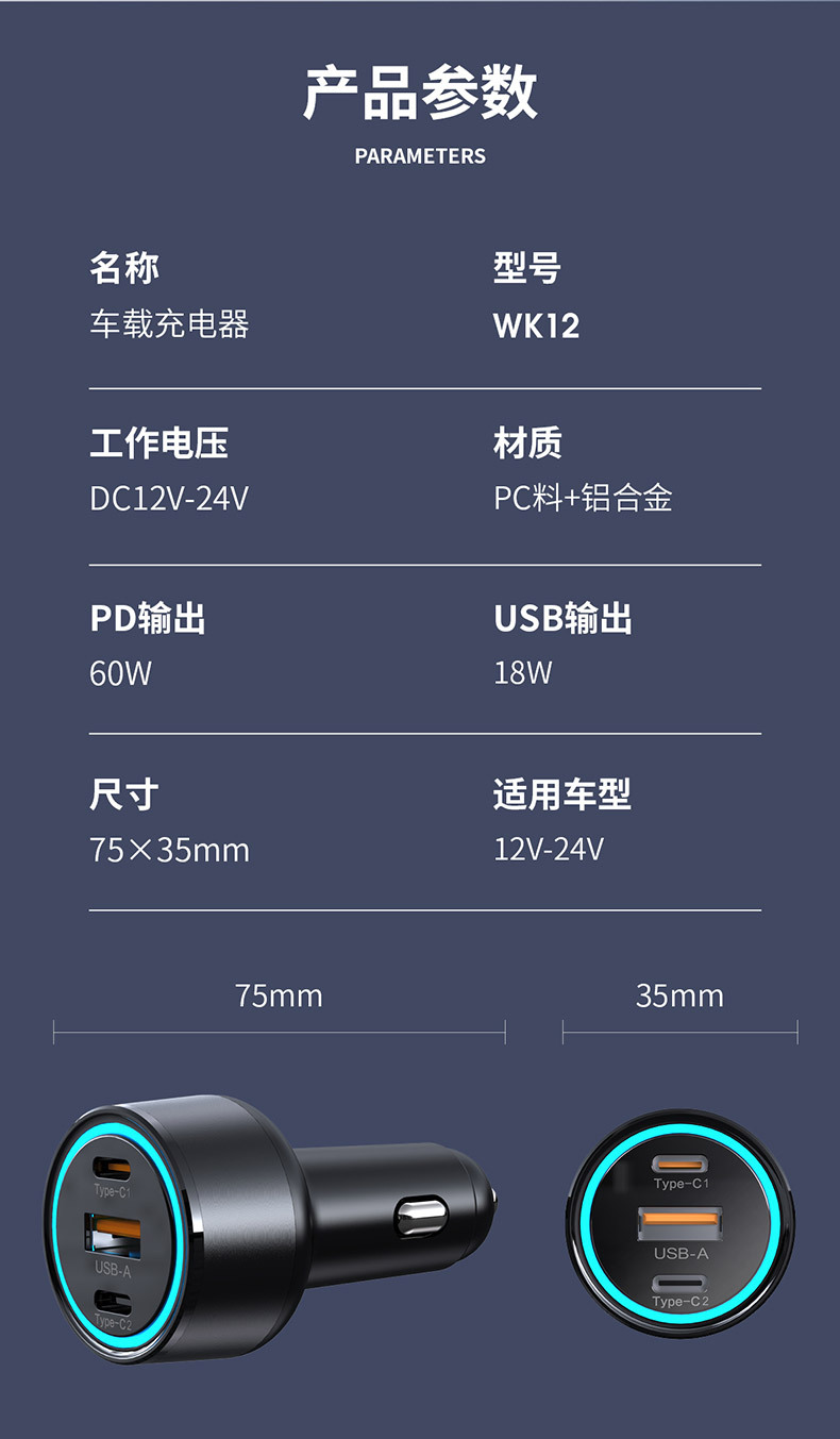 KAIWEIDI -WK12 100WPD car charger USB-C car charger plug suitable for Apple QC3.0 car charger head