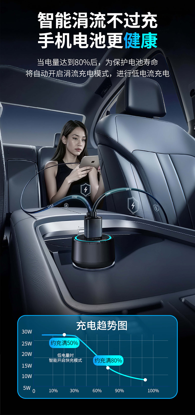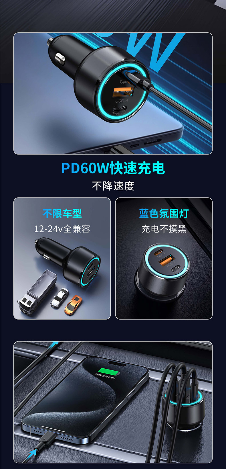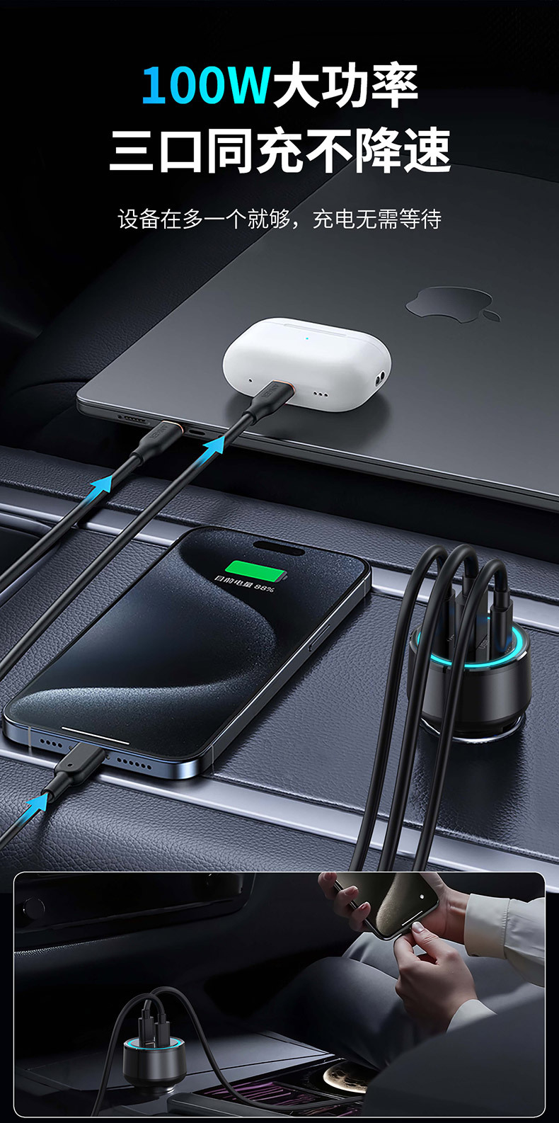 KAIWEIDI -WK12 100WPD car charger USB-C car charger plug suitable for Apple QC3.0 car charger head