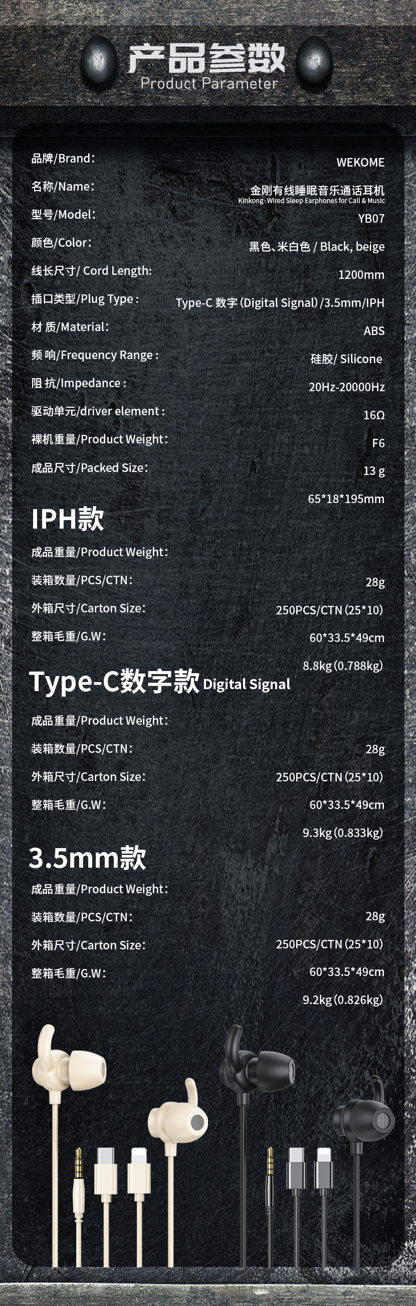 wekome YB07 Kinkong-Wired SleepEarphones for Call & Music