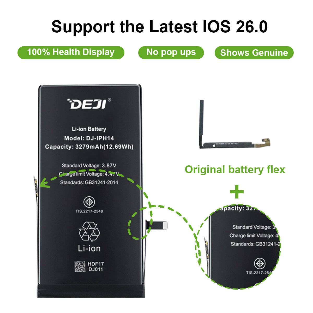 DEJI 3200mAh Health Lithium Battery for iPhone 14 Pro New and with Flex Cable Features Charging 12 Months Warranty