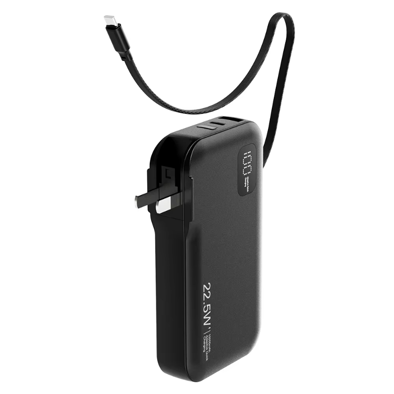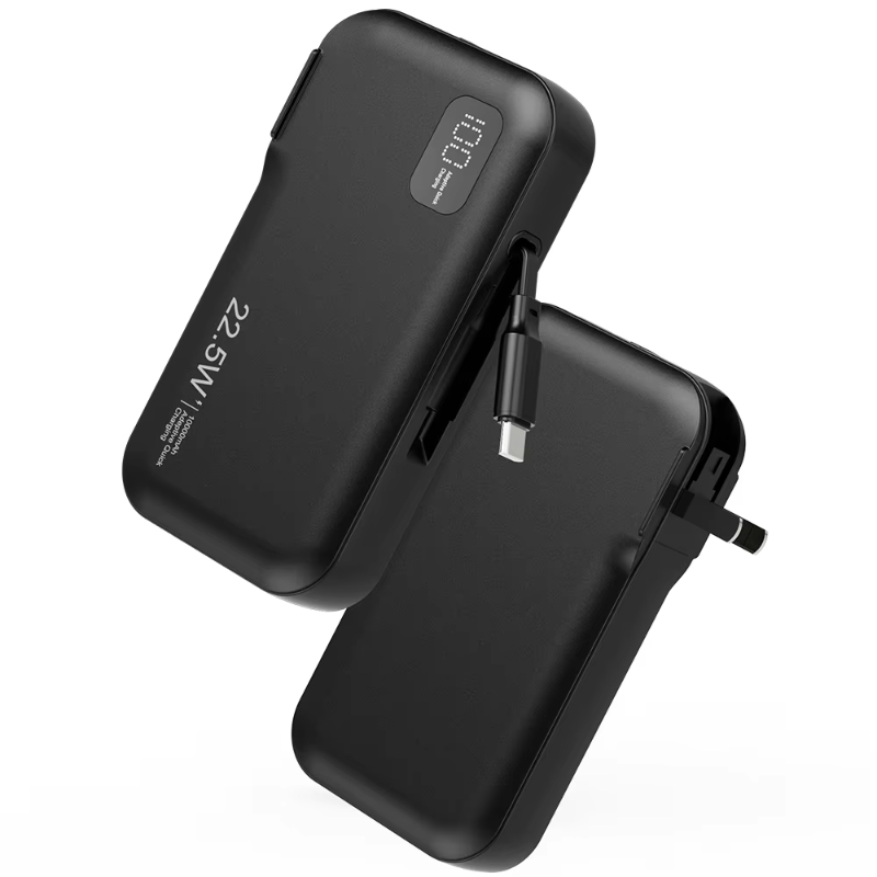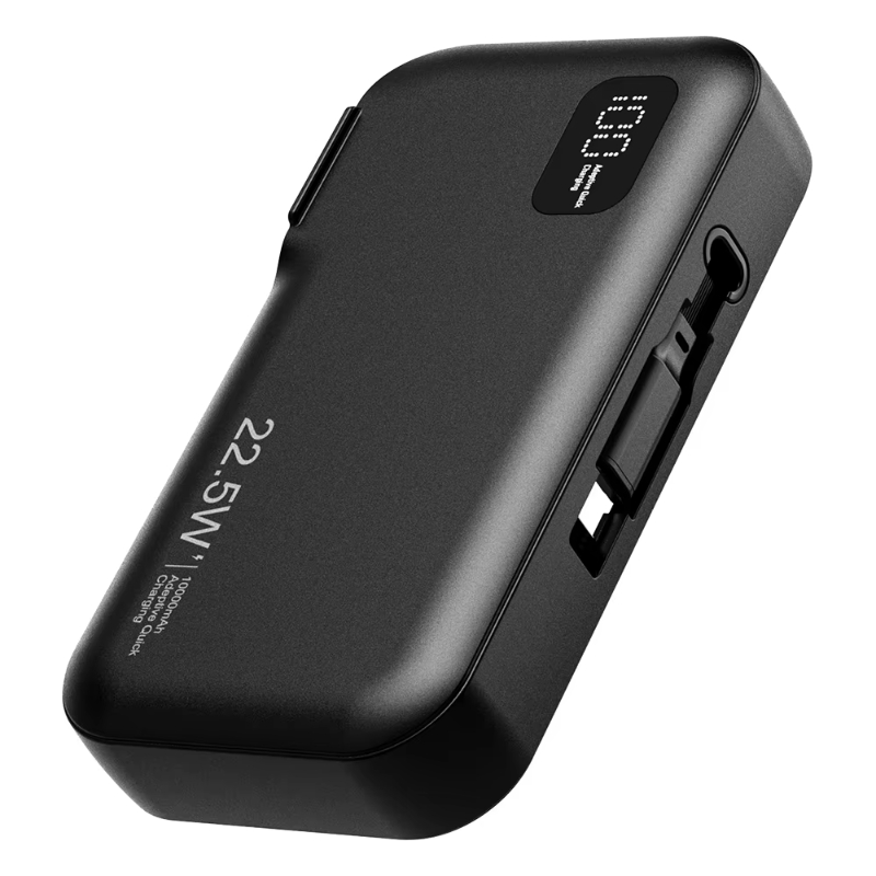 Wesdar 10000mAh Power Bank with Trending Digital Display Design Black Plastic New Phone Charger Type C Cable Micro USB Interface