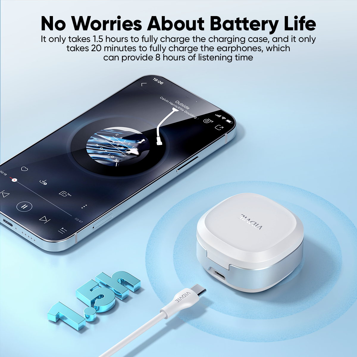 20min (earphones);about 1.5h (Charging case)