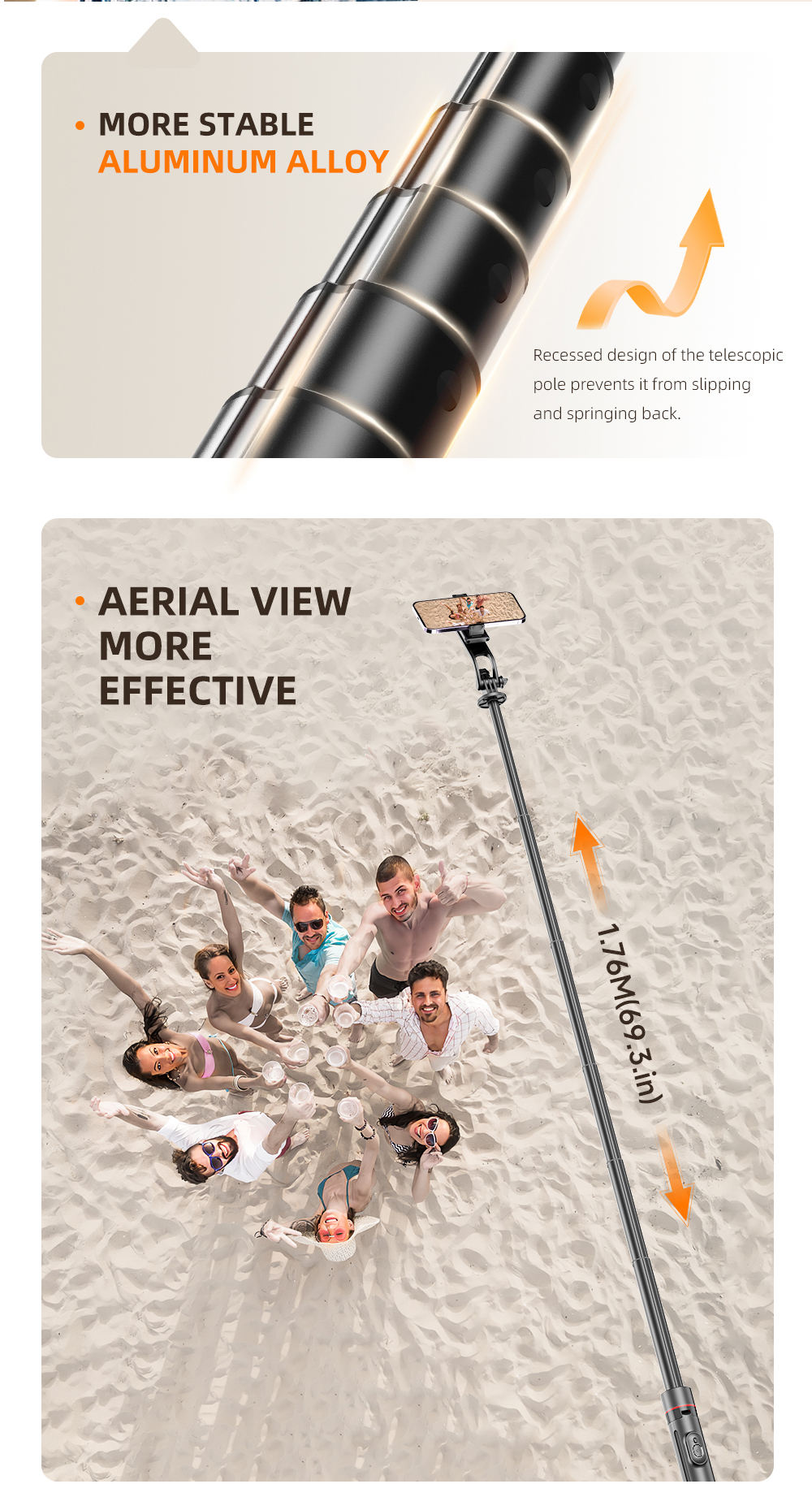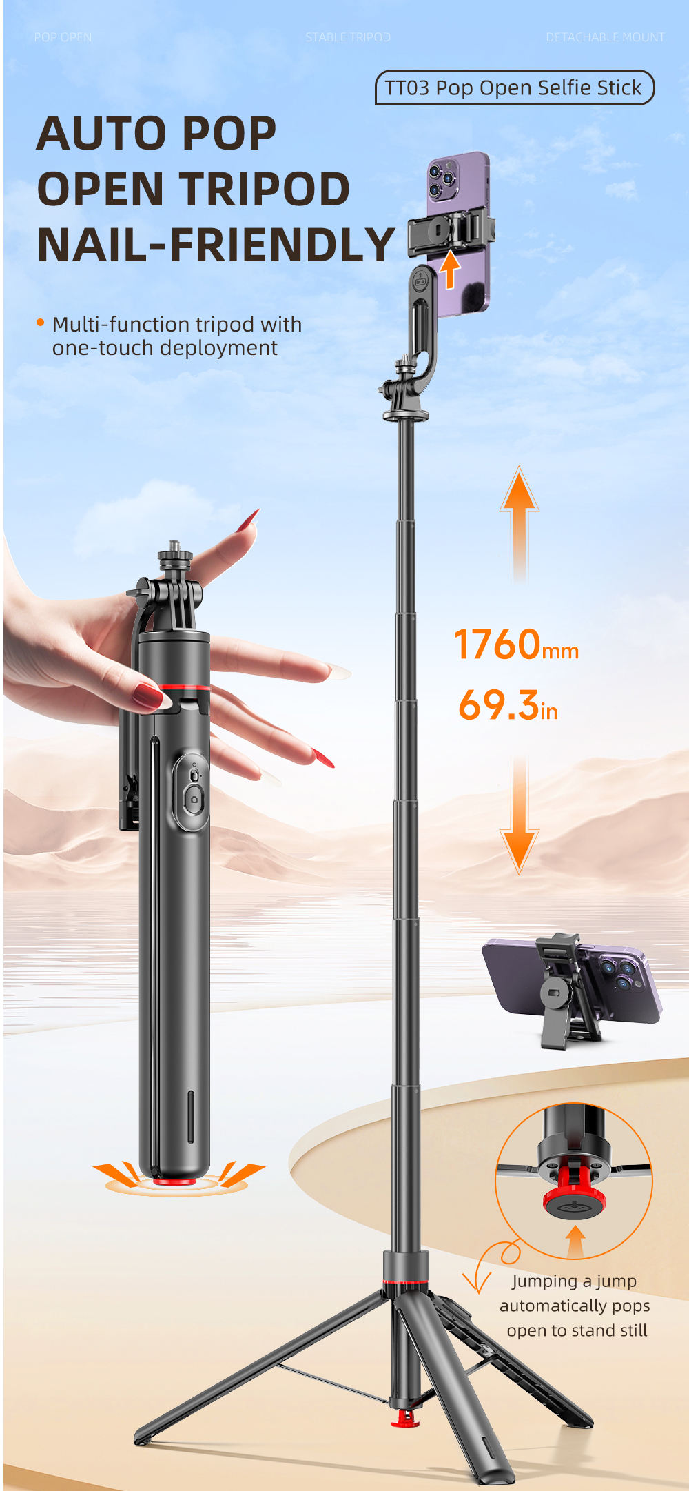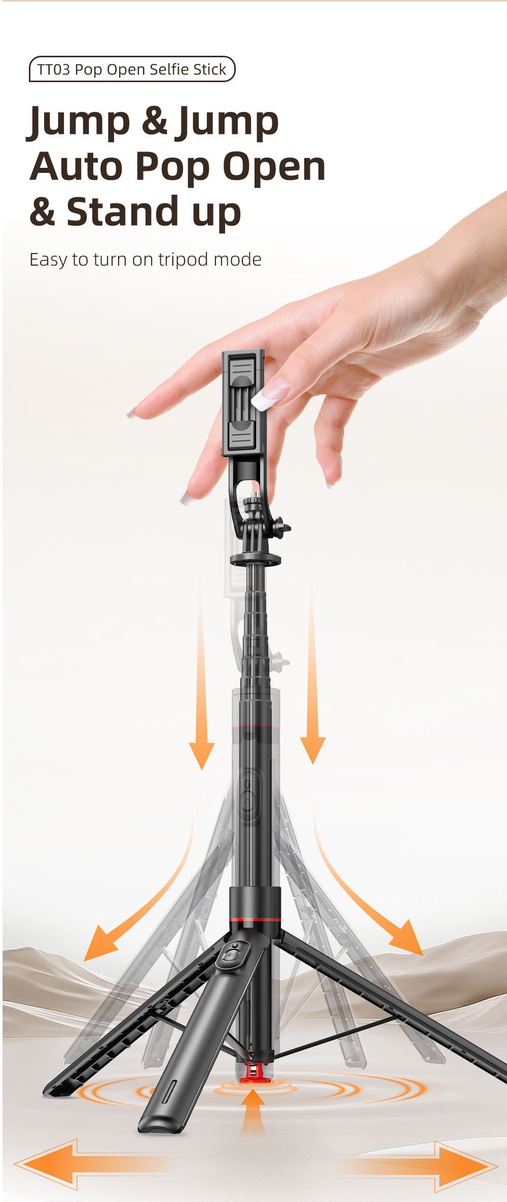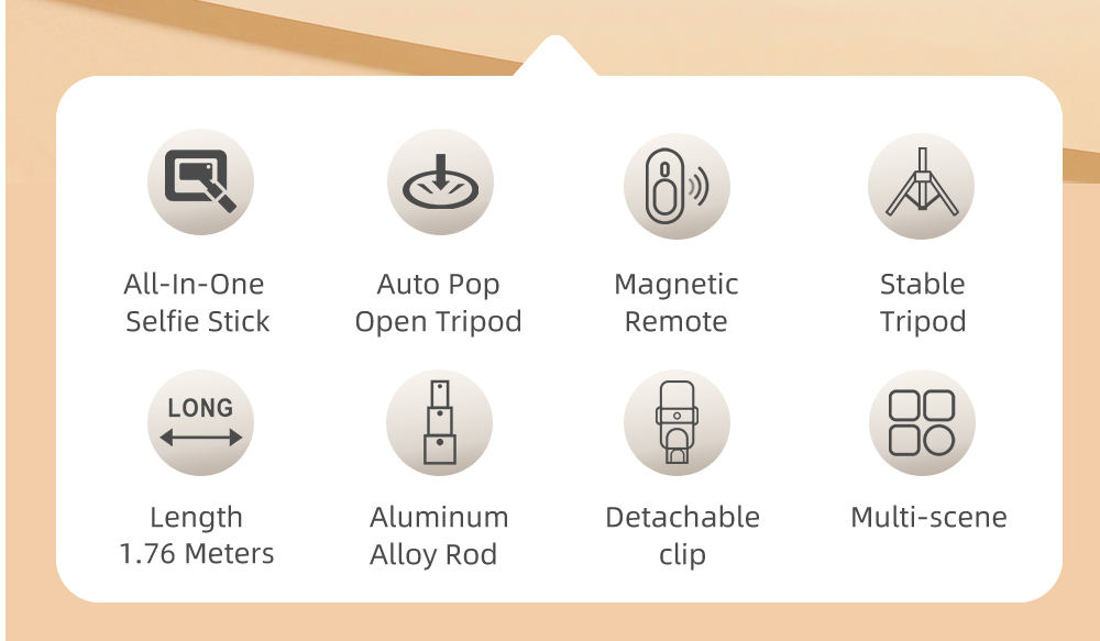 TOKQI TT03 1.76m All-in-one Auto Pop Open Tripod Magnetic Remote Detachable Phone Clip Tripod Selfie Stick