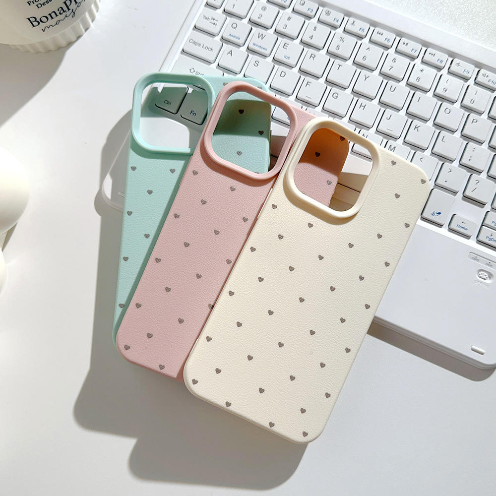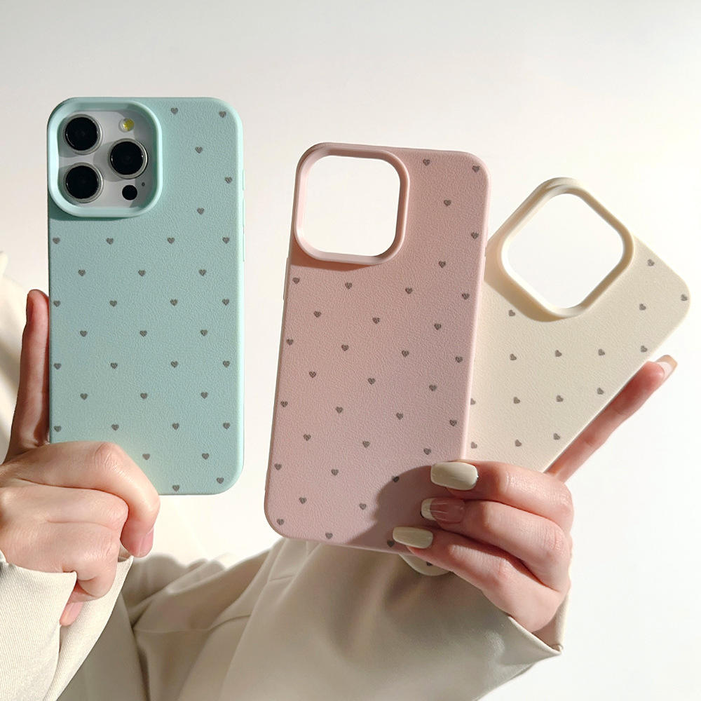 Minimalist Candy-Colored Polka Dot Heart-Shaped Case for iPhone 16_15 Pro Max Waterproof Artificial Leather Mobile Phone Case