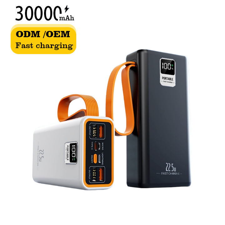 ODM_DEM PD 22.5W Fast Charging LED Digital Display 4 USB Output 30000mAh Portable Charger Power Bank Emergency Lights