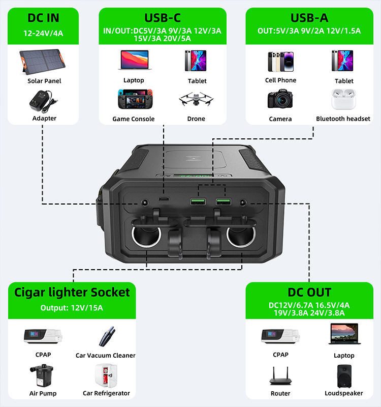 6000mAh High-Capacity Power Station with PD Bidirectional Fast Charging Cigarette Lighter Solar Panel for CPAP Backup Battery