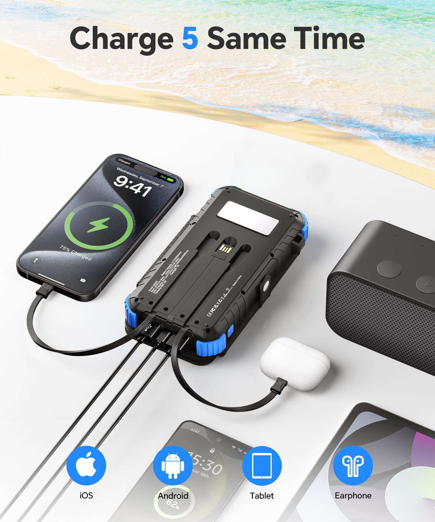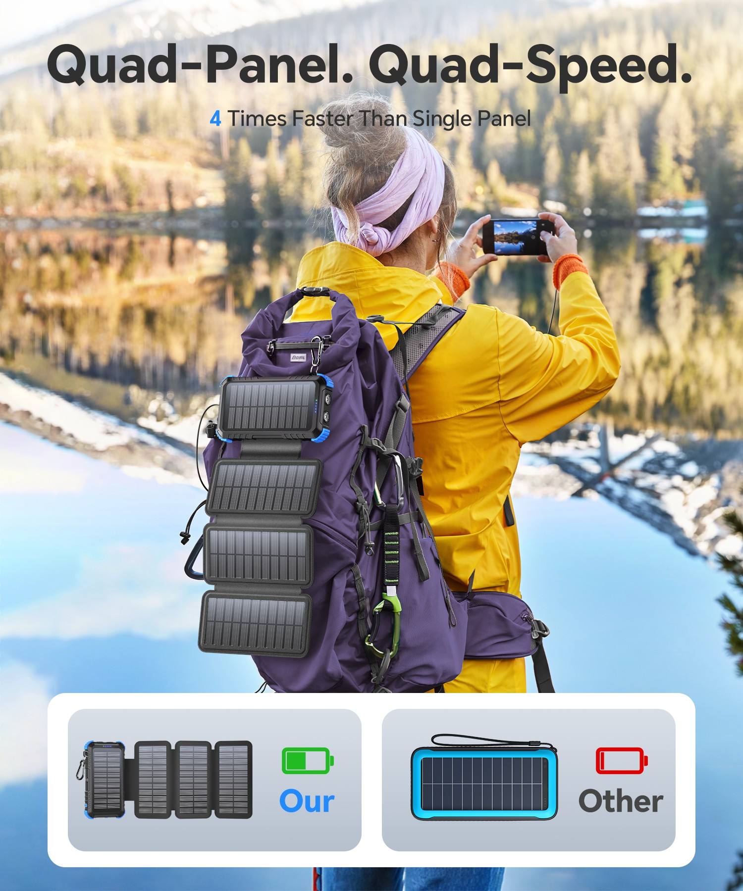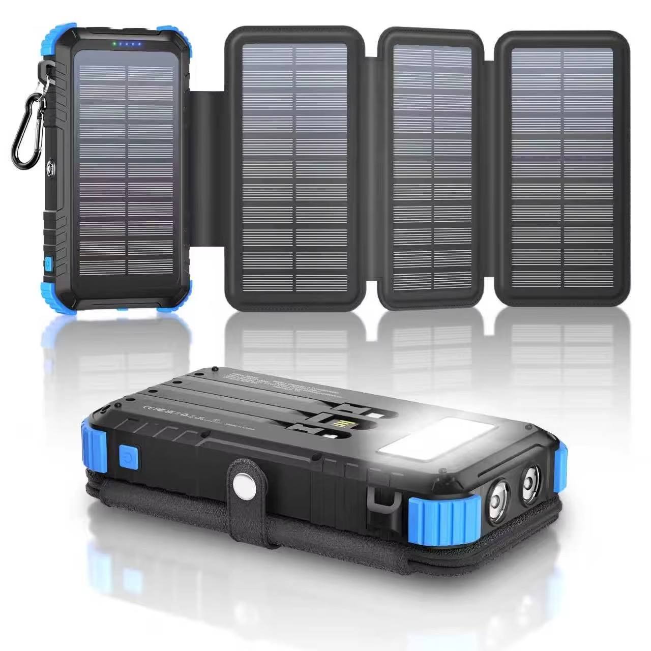 4 Solar Panels 20000mAh Solar Power Bank Built-in Camping Light Quick Charging Cable Portable Emergency Outdoor