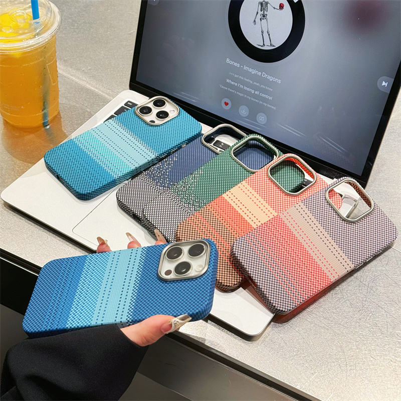 Fashion Carbon Fiber Textured Phone Case for iPhone 13 14 15 16 Pro Max 16 Plus Ultra Thin PC Frosted Magnetic Shockproof Cover