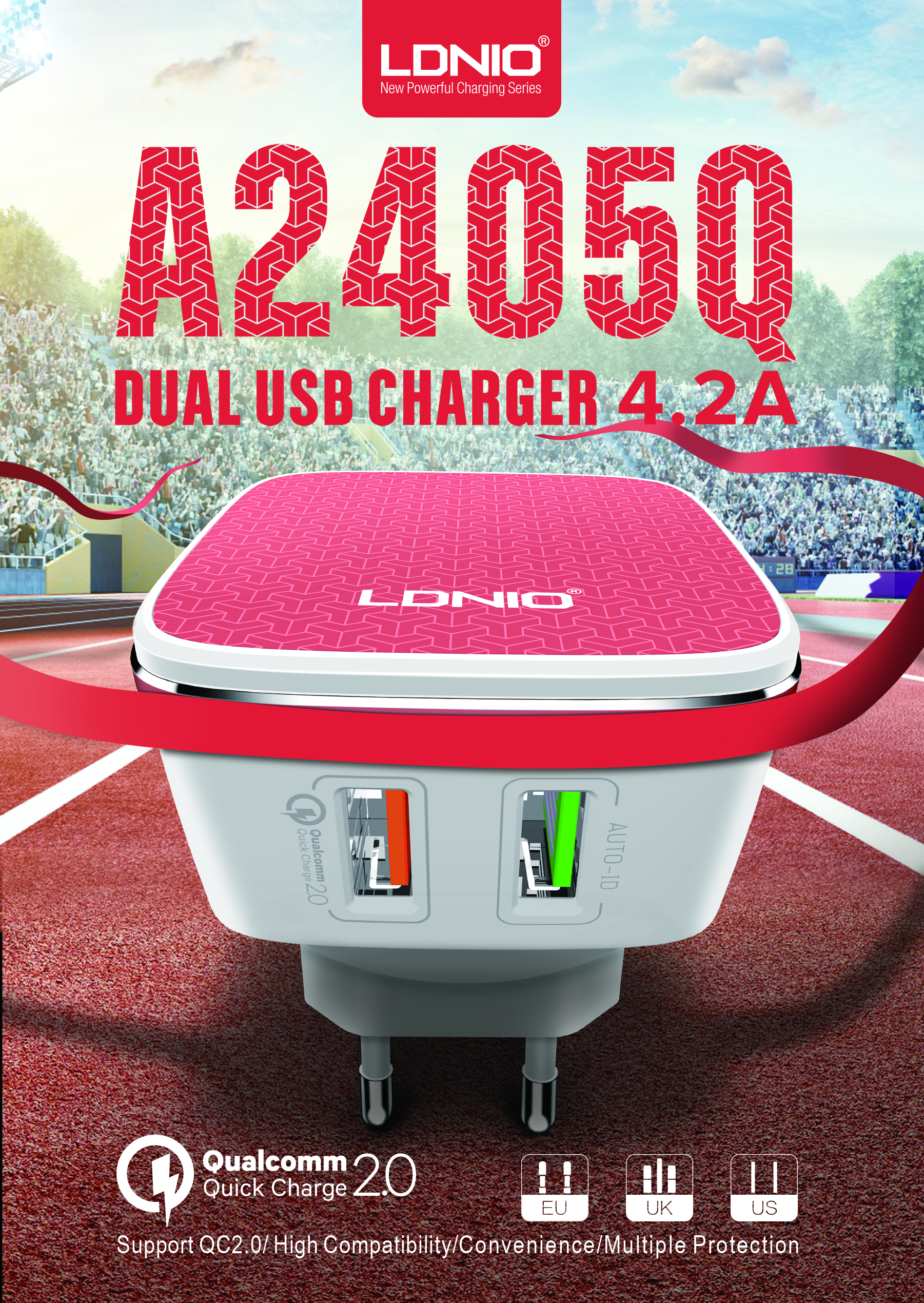 LDNIO--Charger--A2405Q UK/Euro/US plug 2USB Ports