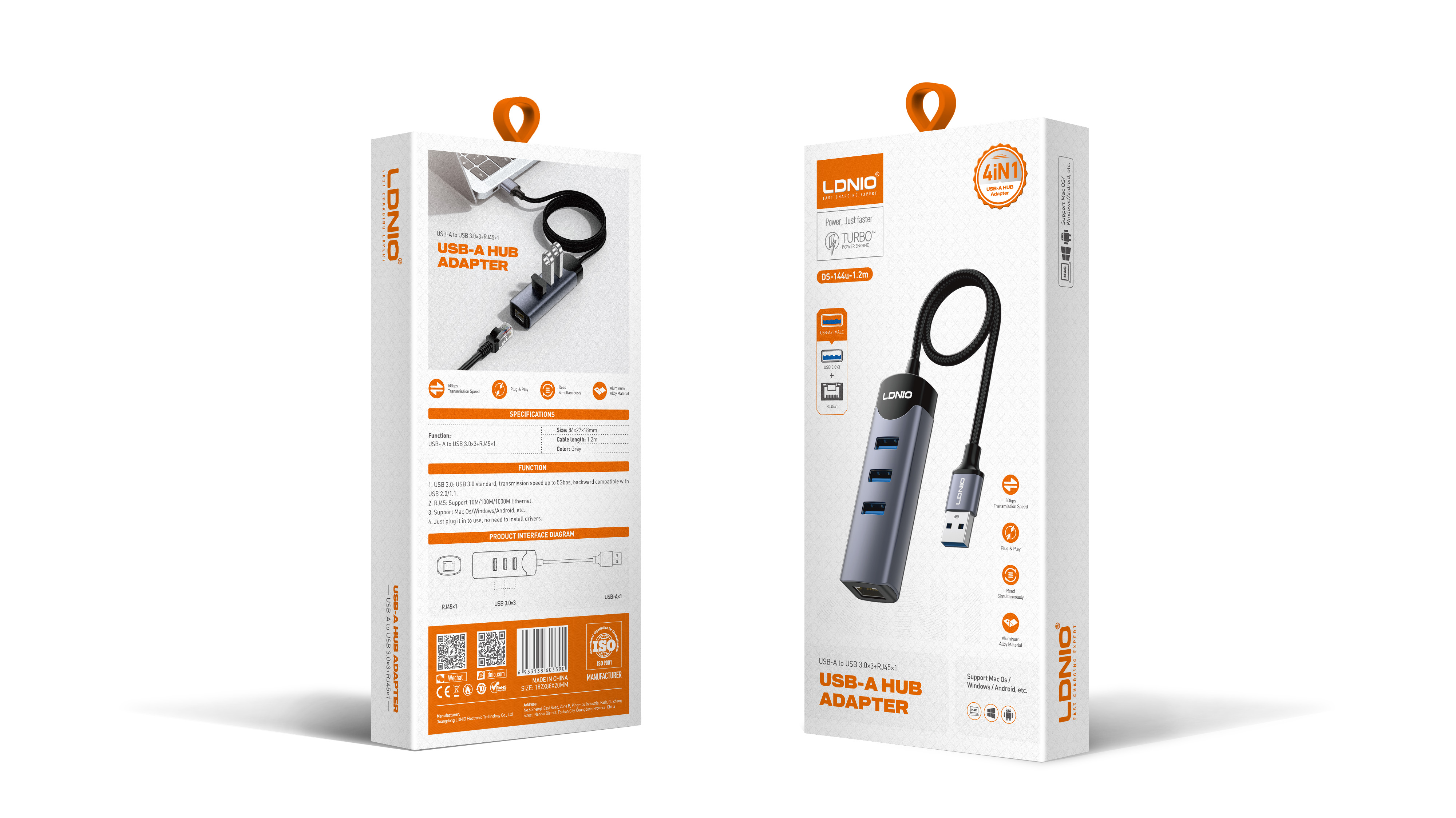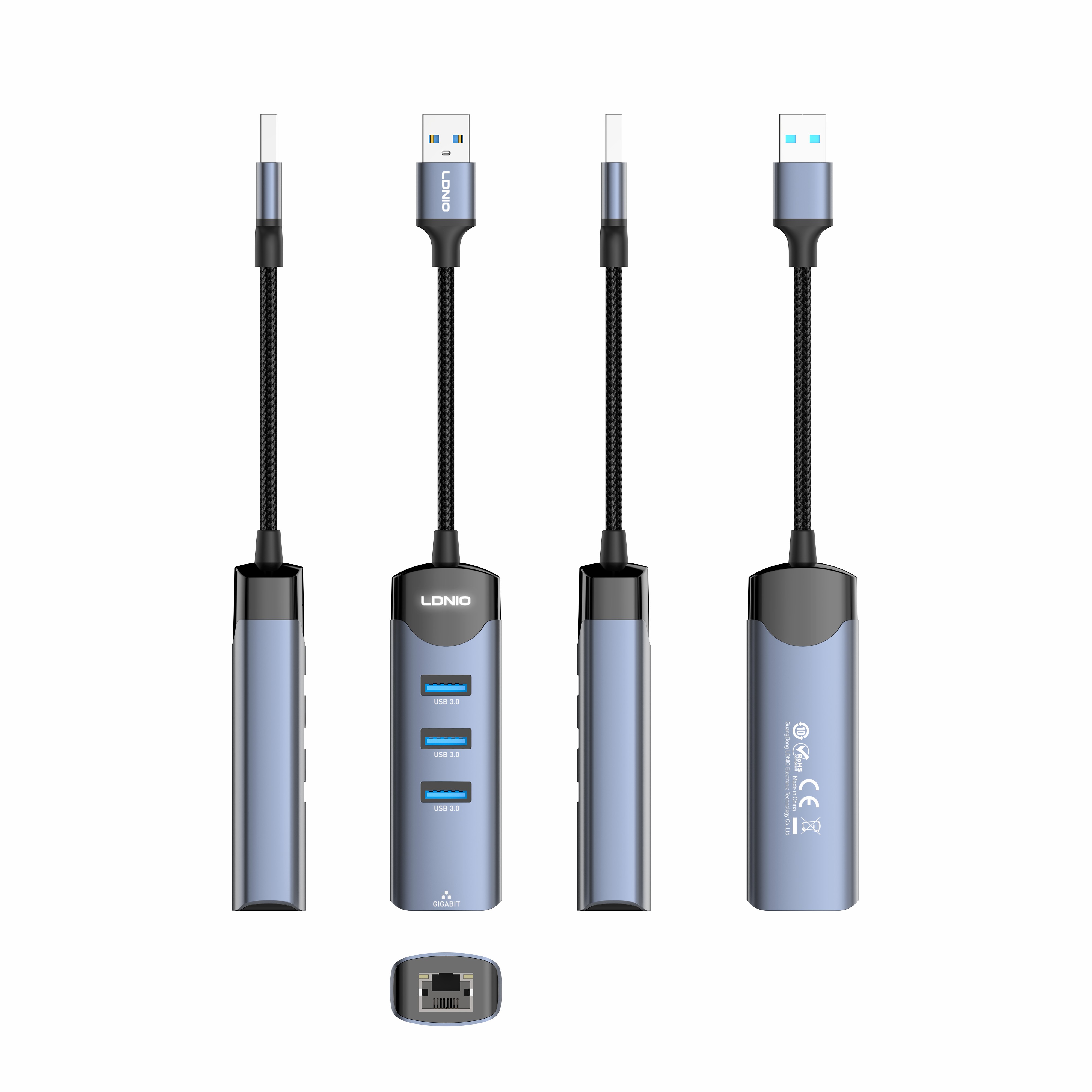 DS-144U-1.2M 1.2M Cable USB-A + Type-C To USB3.0*3+RJ45*1